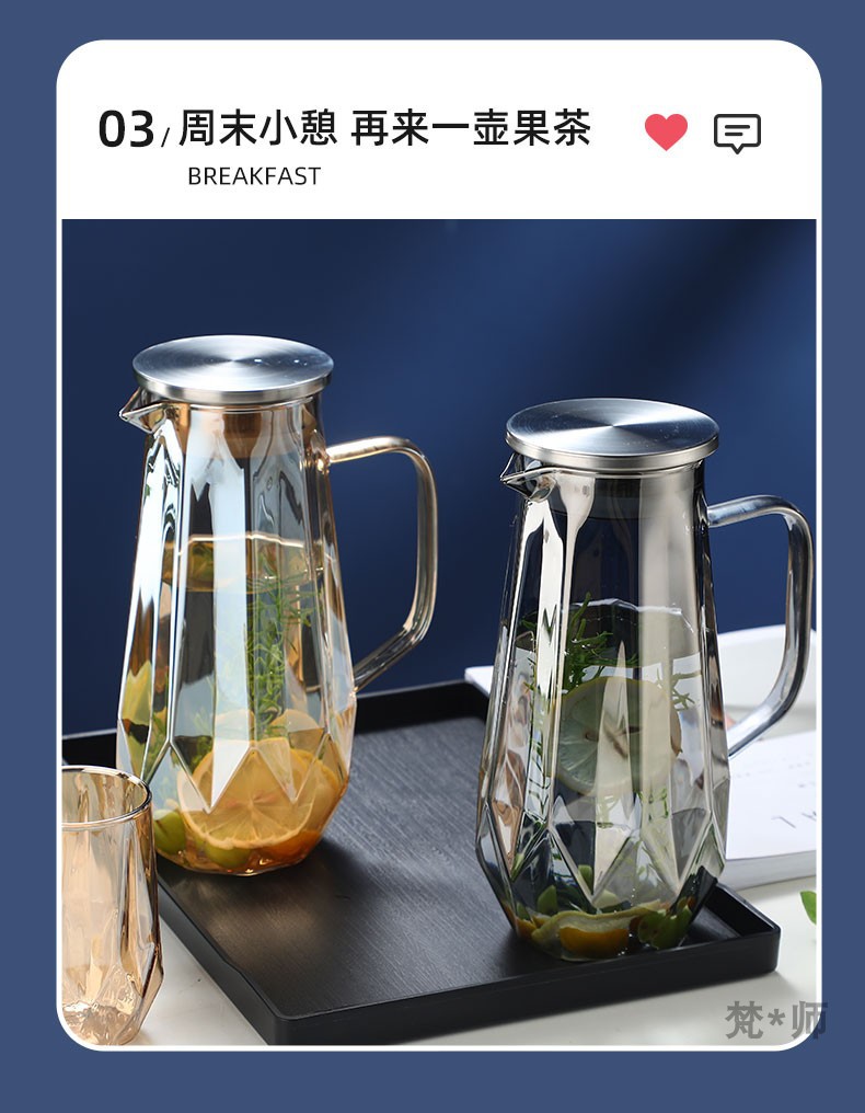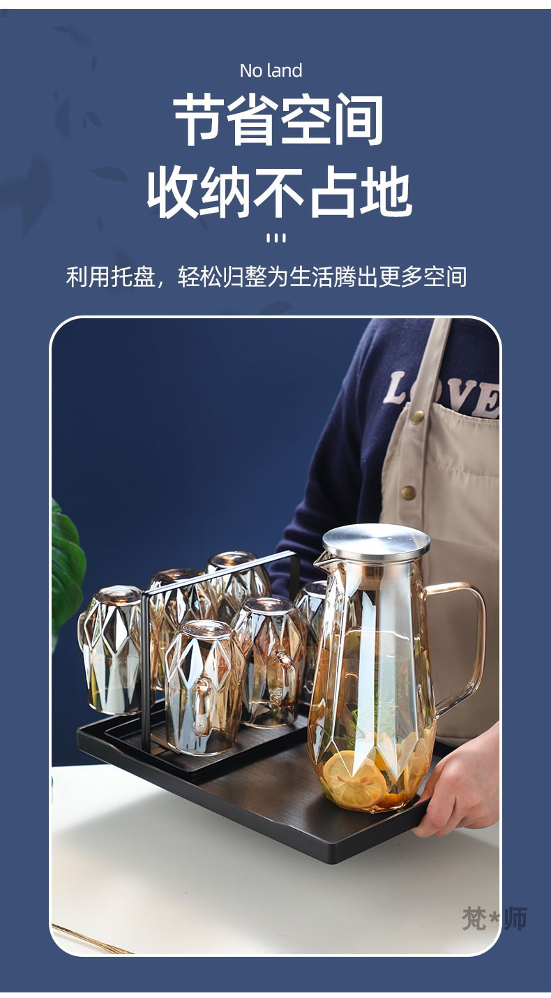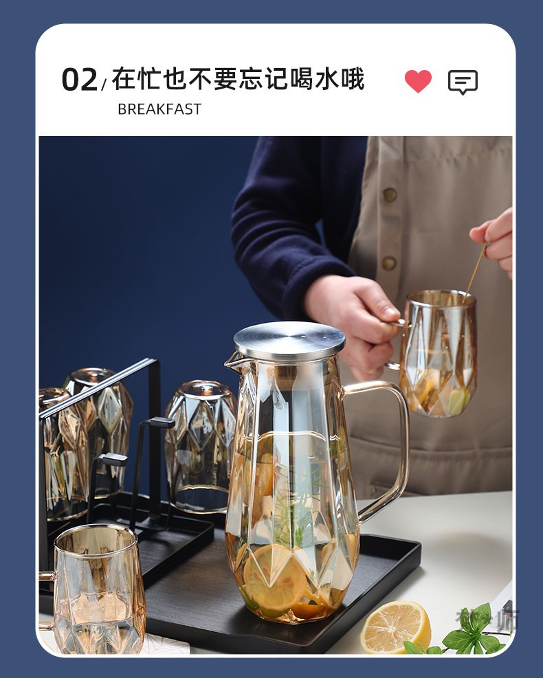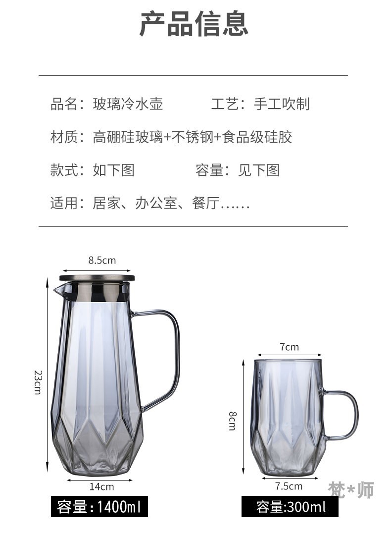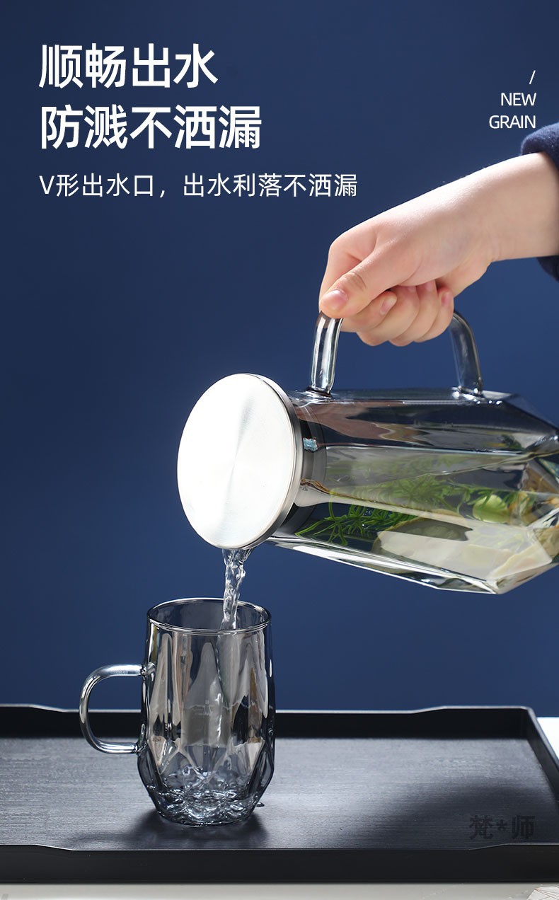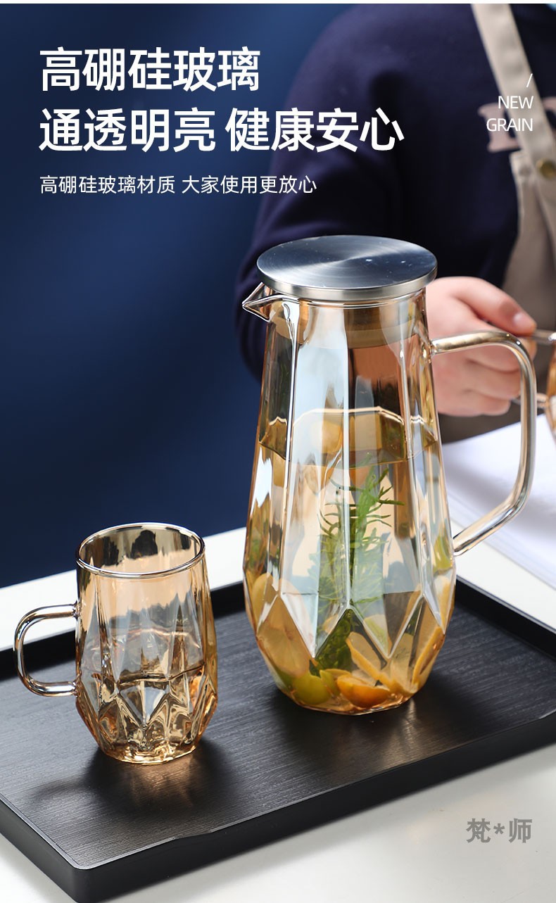 家用冷水壶套装耐高温玻璃水壶水杯大容量凉水壶耐热玻璃冷水壶