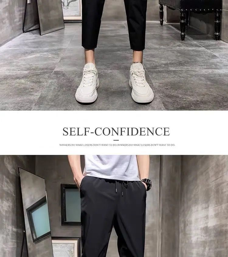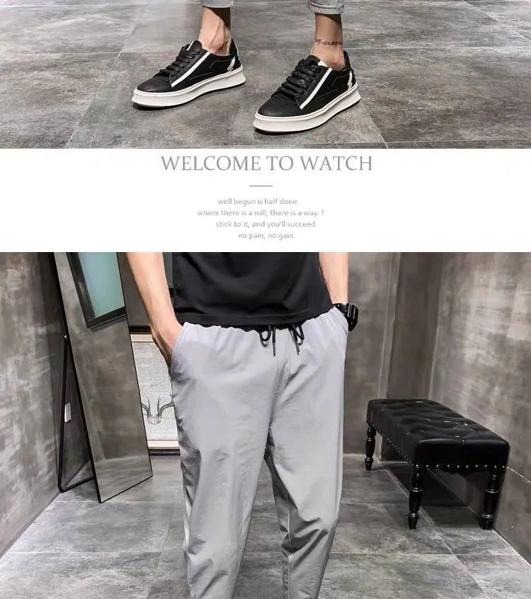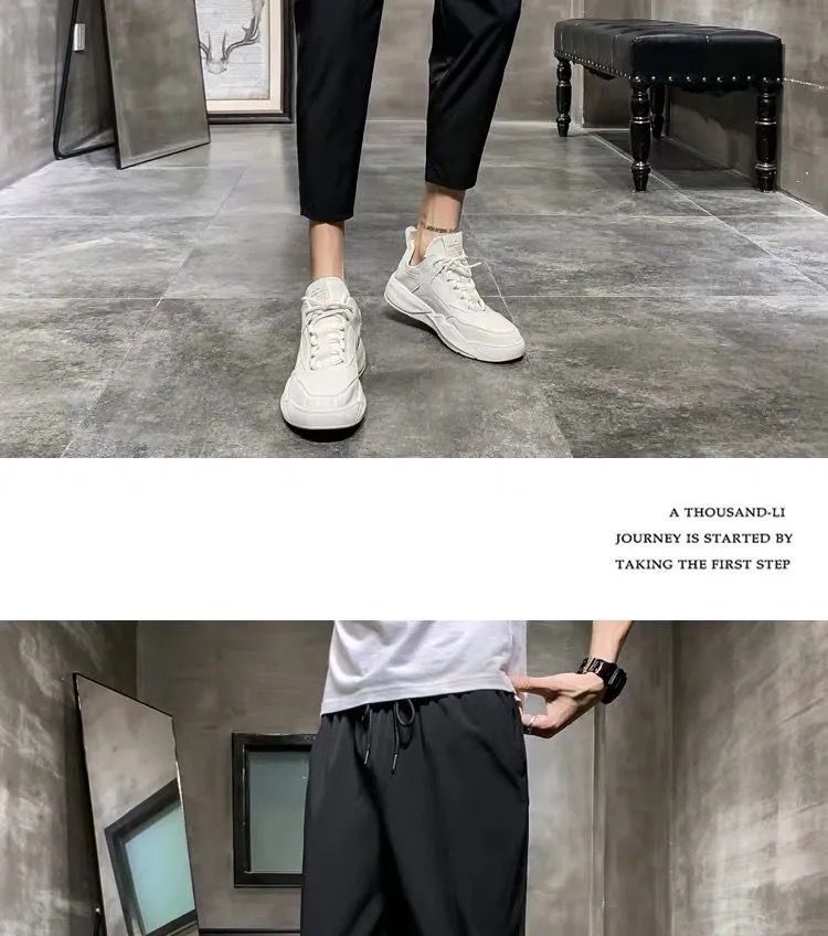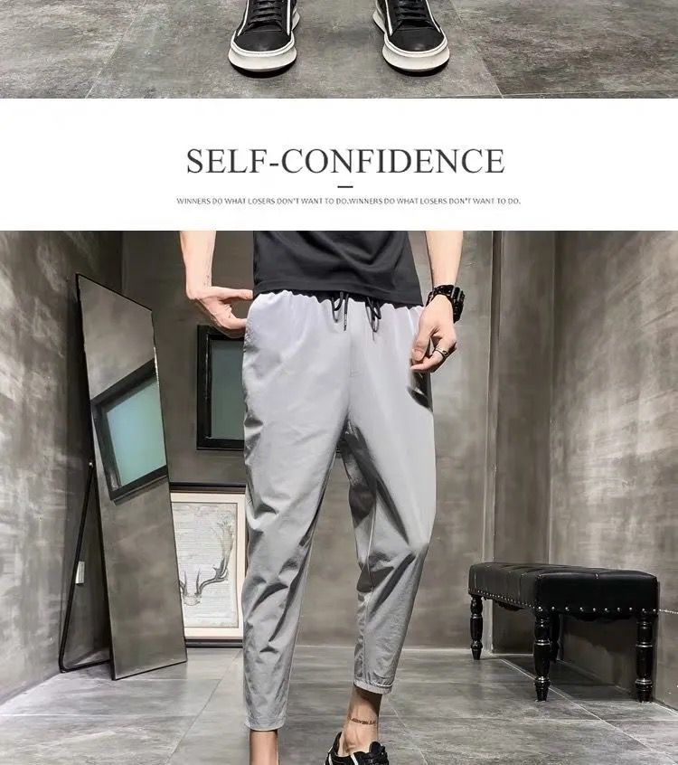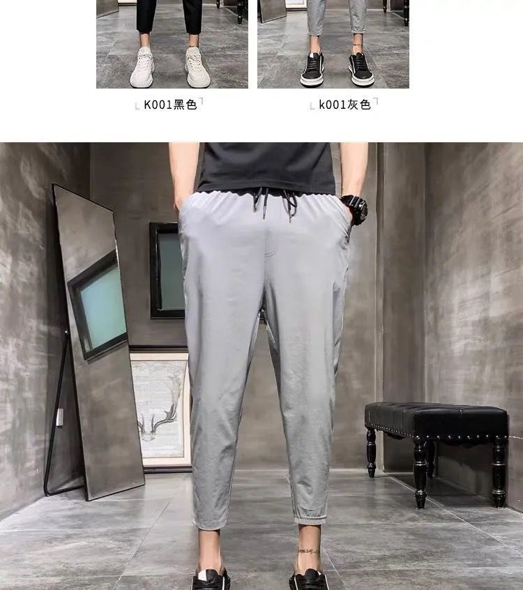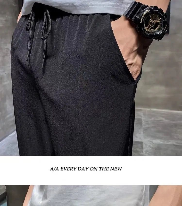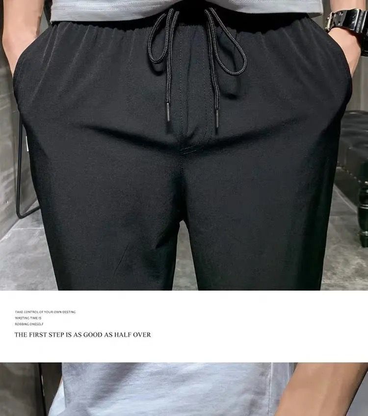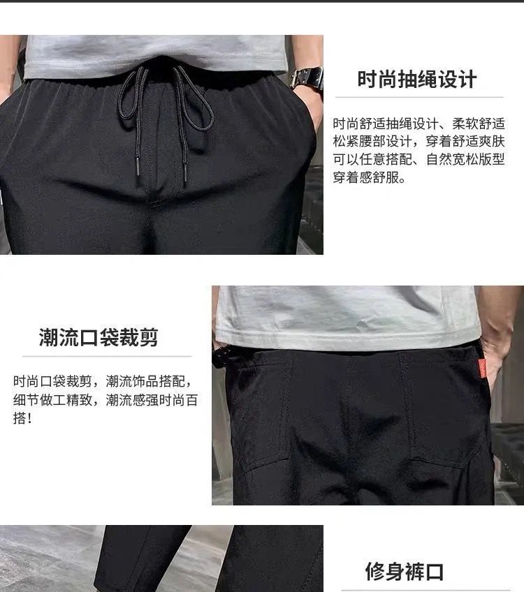 Pantalones de nueve puntos para hombres relajados deportes de ocio de seda de hielo gordos más gordos aumentan la velocidad de secado de nueve puntos pantalones de verano ultradelgados de moda