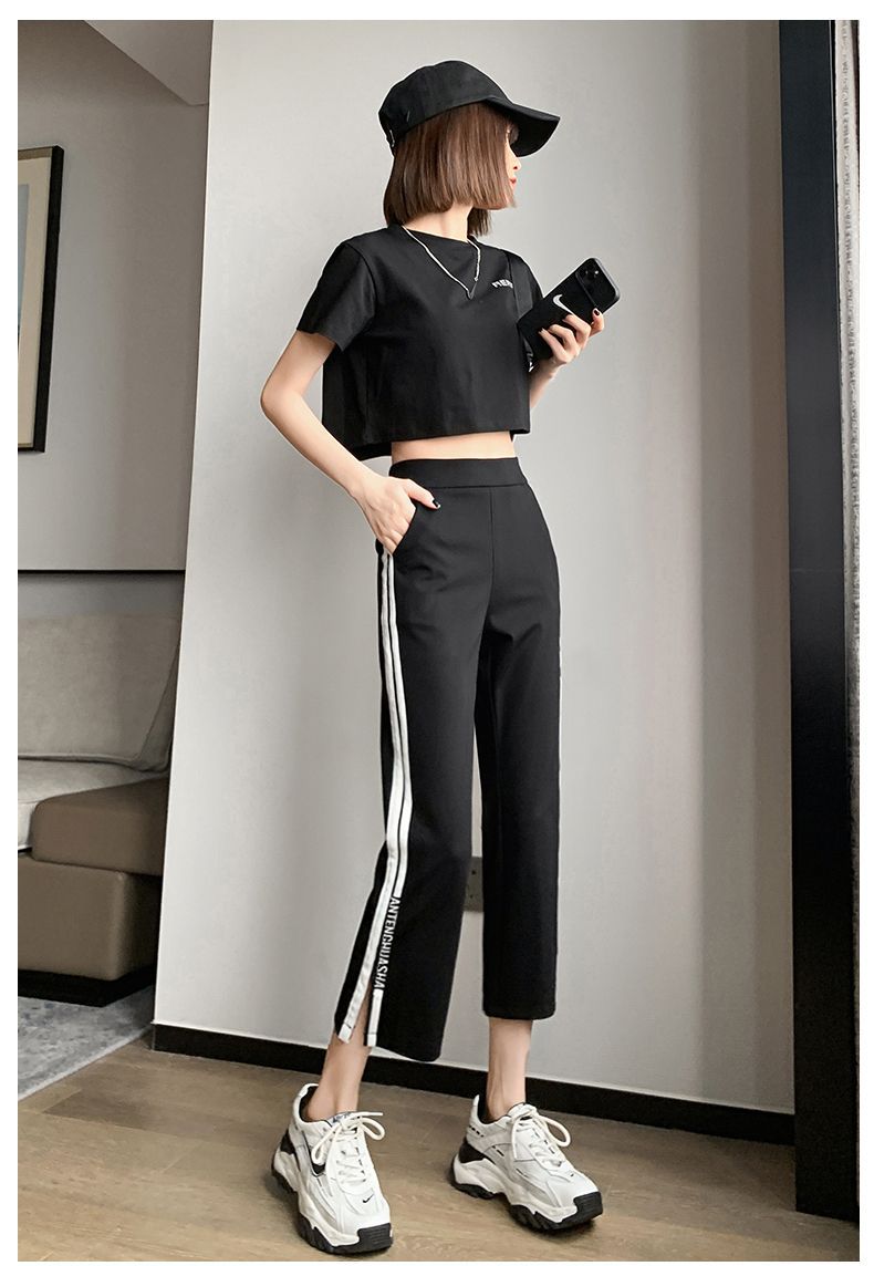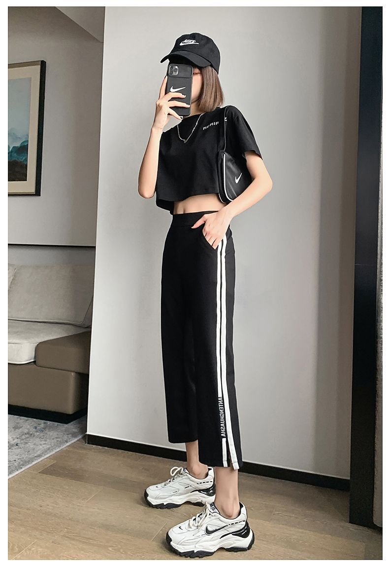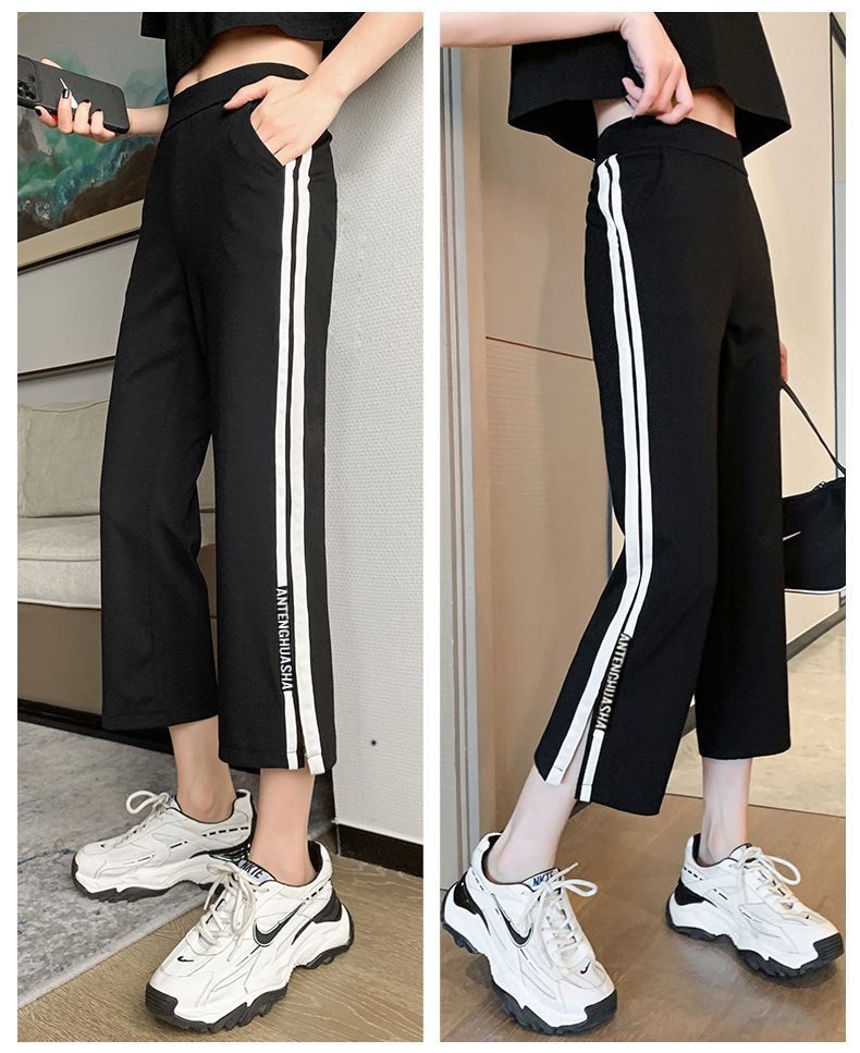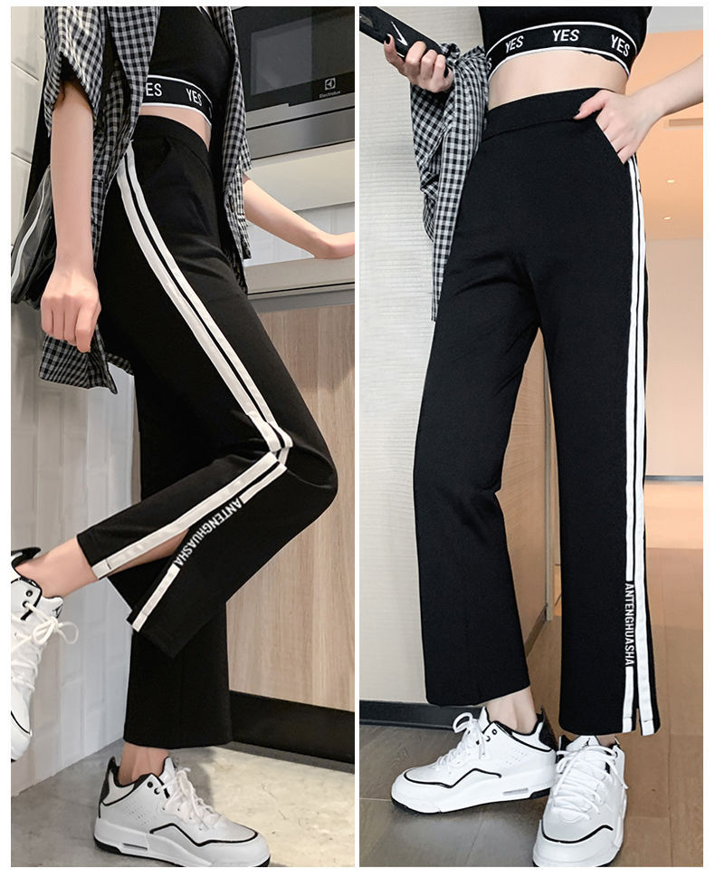 Pantalones negros de nueve puntos gratis para mujeres en primavera y otoño 2024 nuevos pantalones de trompeta delgados y delgados se abren en la cintura alta y se usan fuera de ocho puntos.