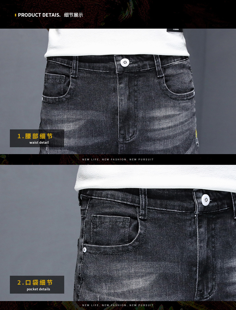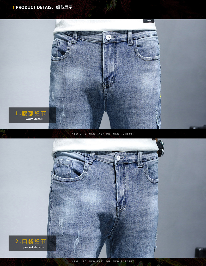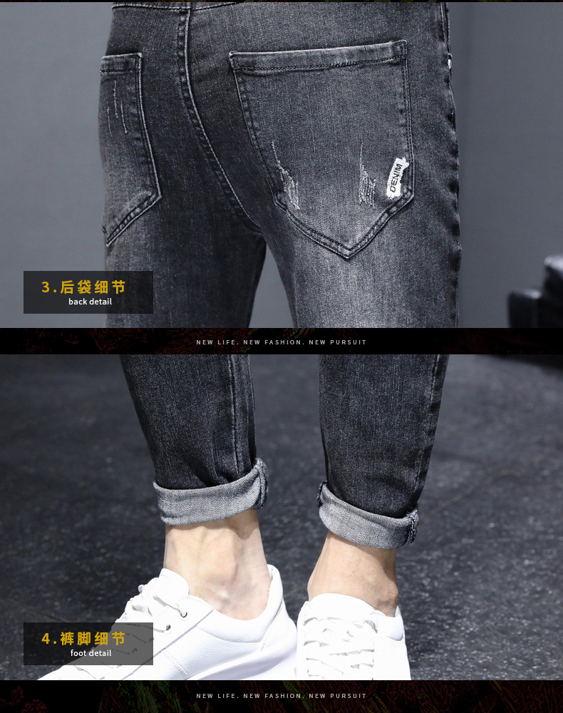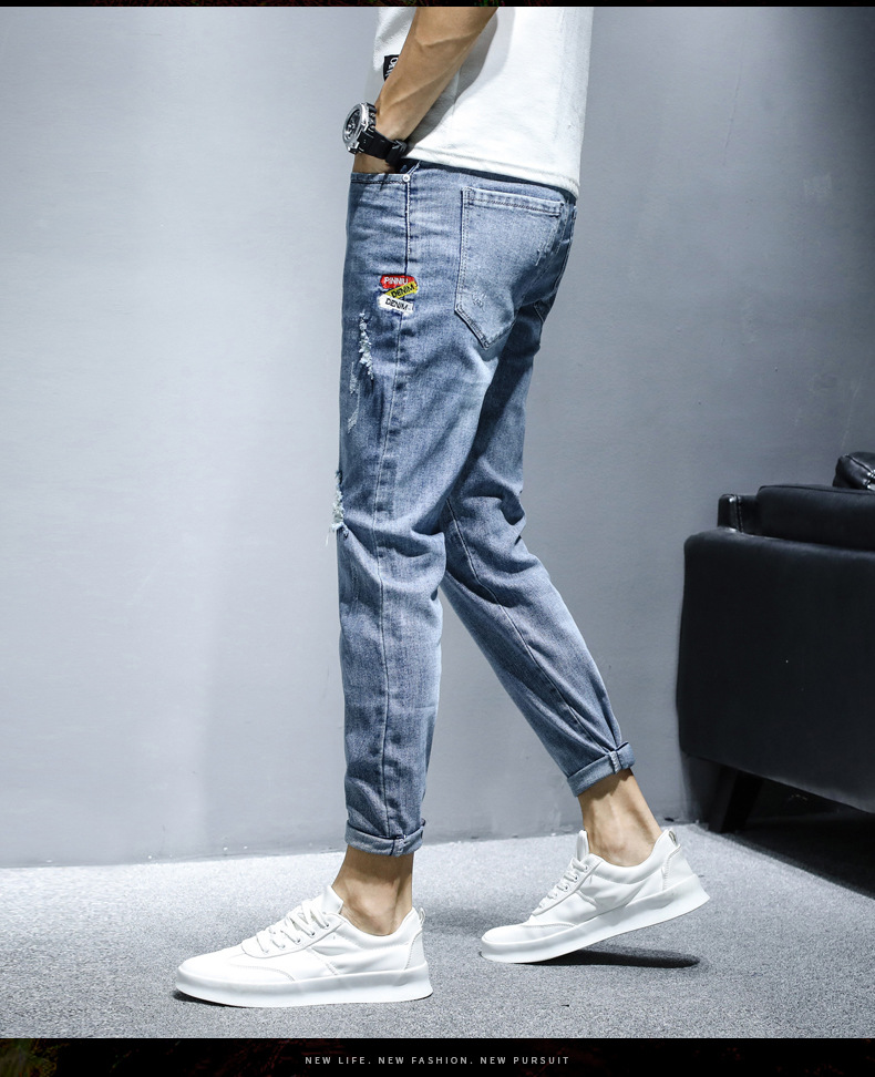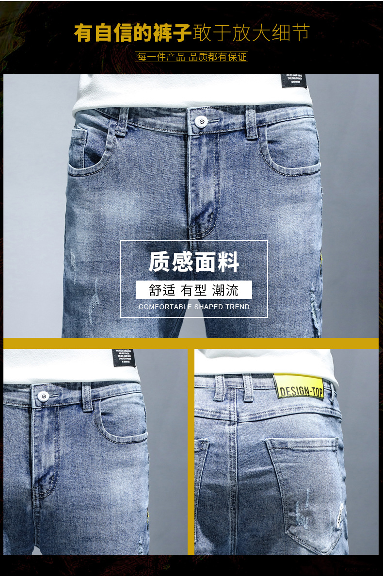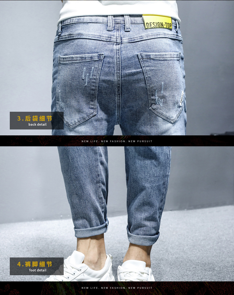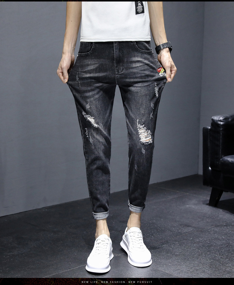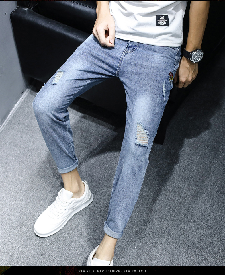 Jeans para hombres, marca de moda de primavera y otoño, versión coreana de moda, verano delgado, agujeros rotos, pies pequeños, pantalones de otoño de nueve puntos