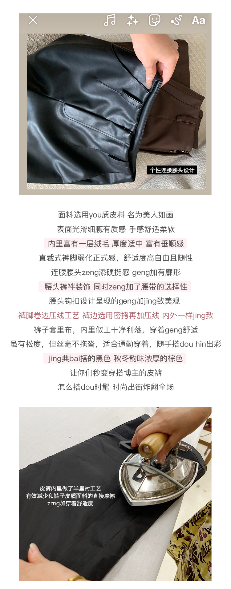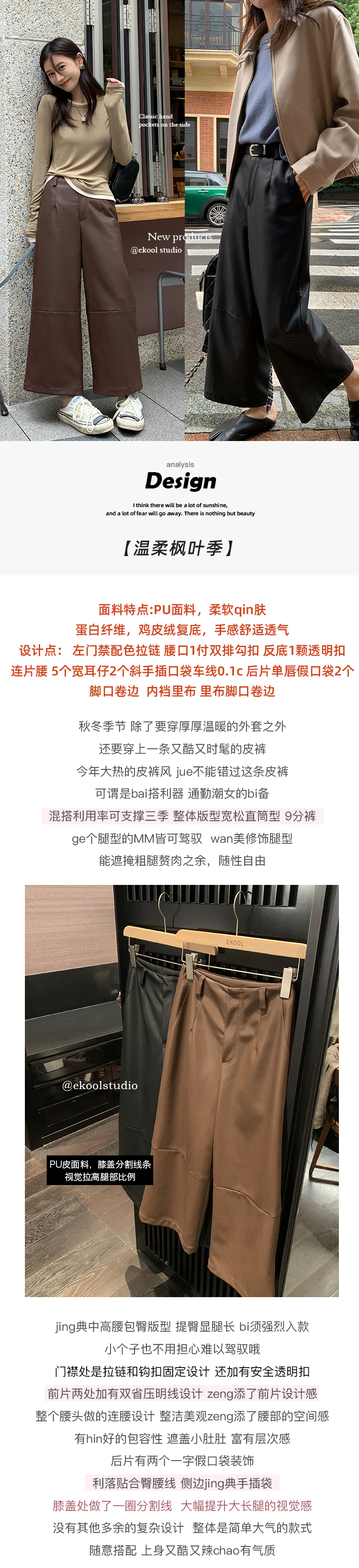 Pantalones de cuero Pu negro baishiwang pantalones de mujer de cintura alta y piernas anchas de otoño pantalones de nueve puntos sueltos, delgados y rectos pantalones casuales