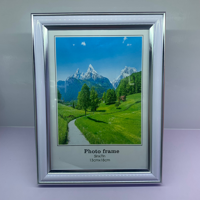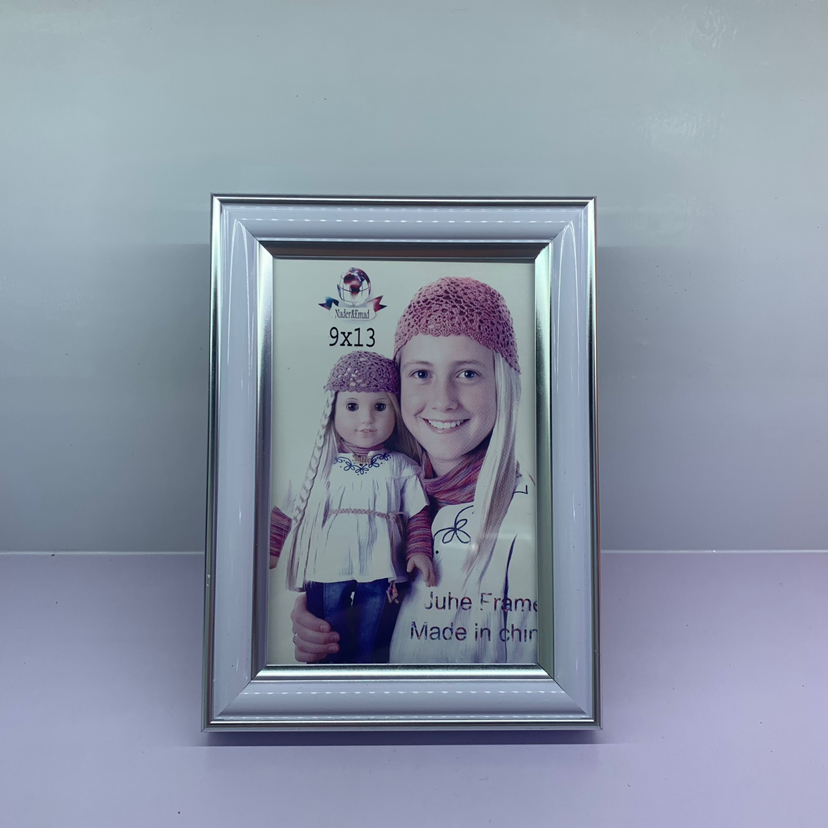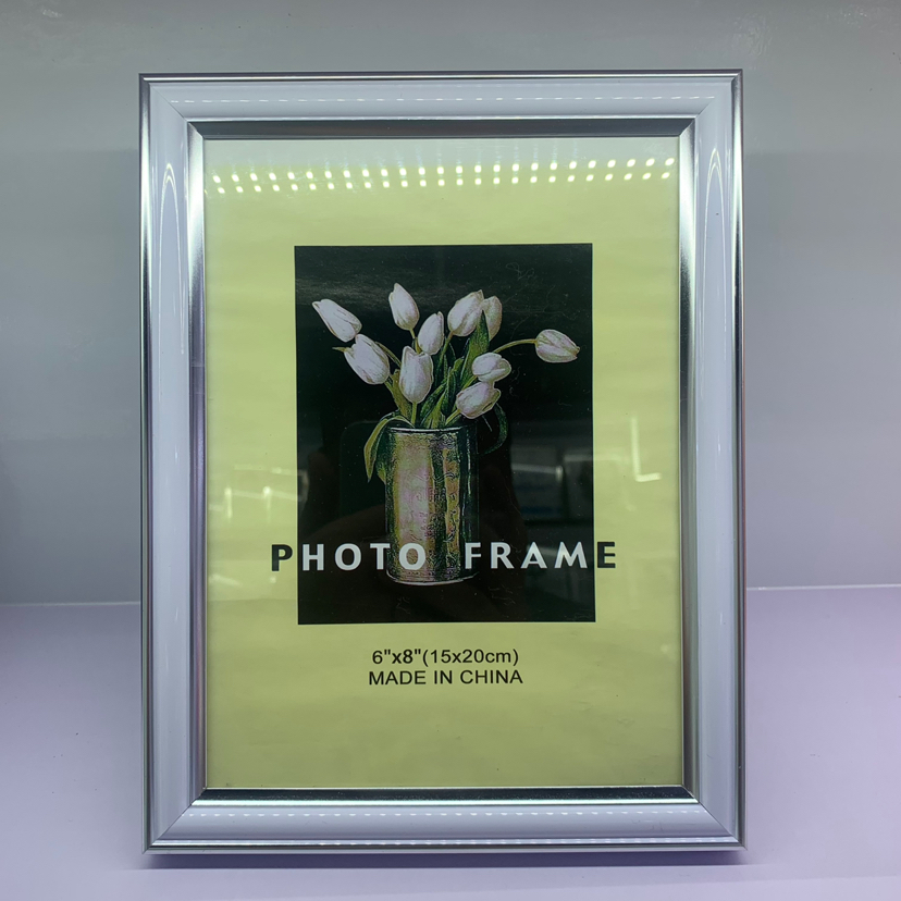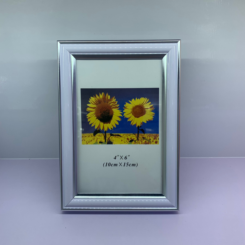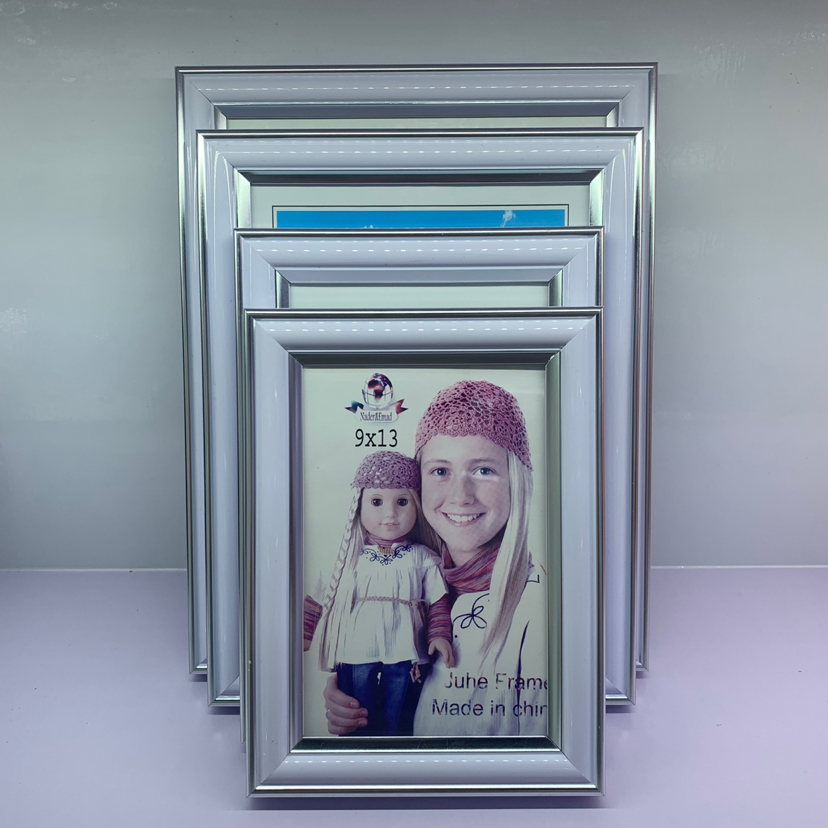 Foto de material de PVC de doble borde plateado blanco decorada con adornos creativos para el hogar, marcos de fotos artesanales