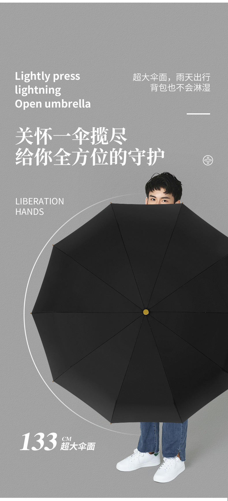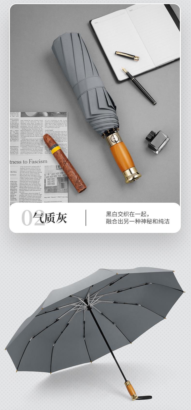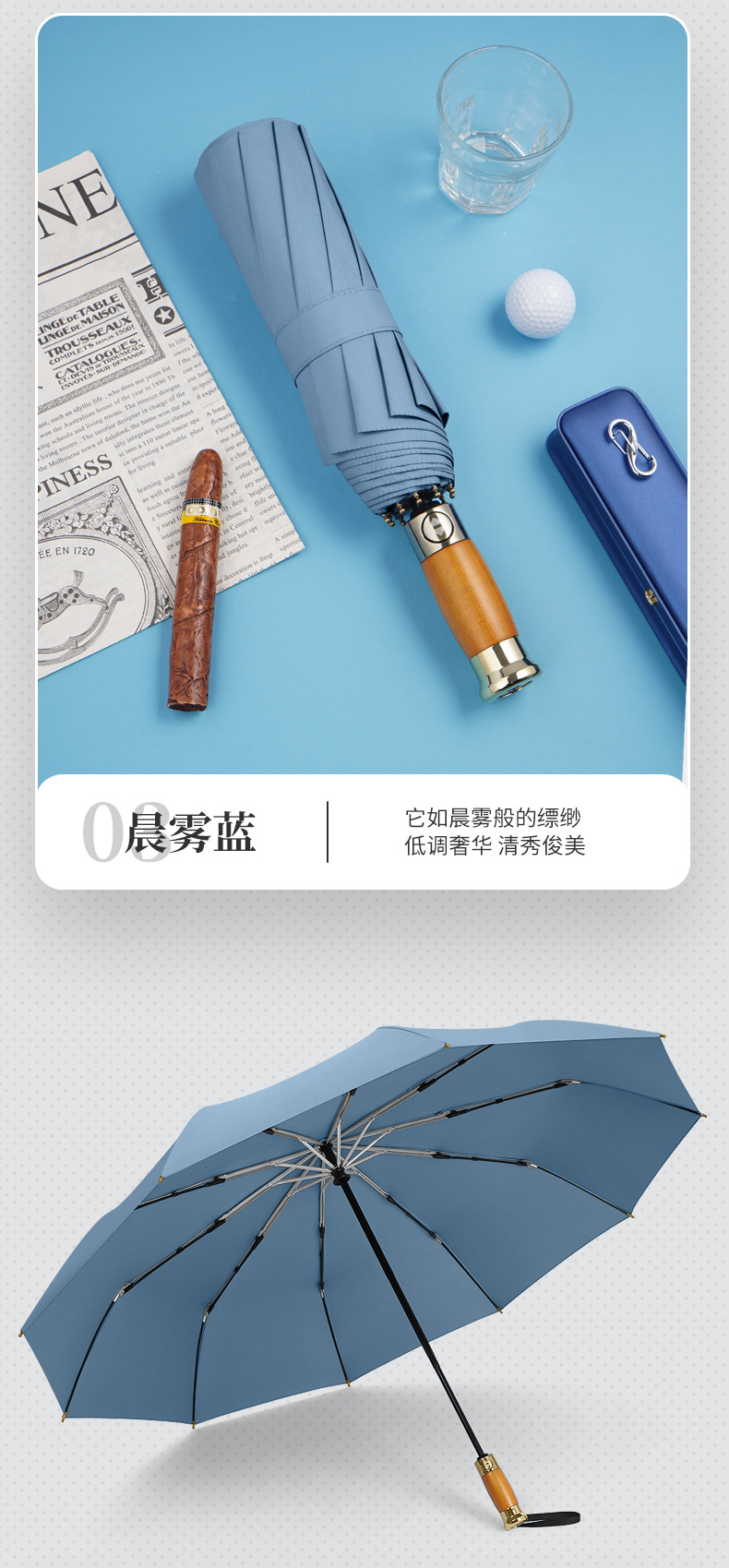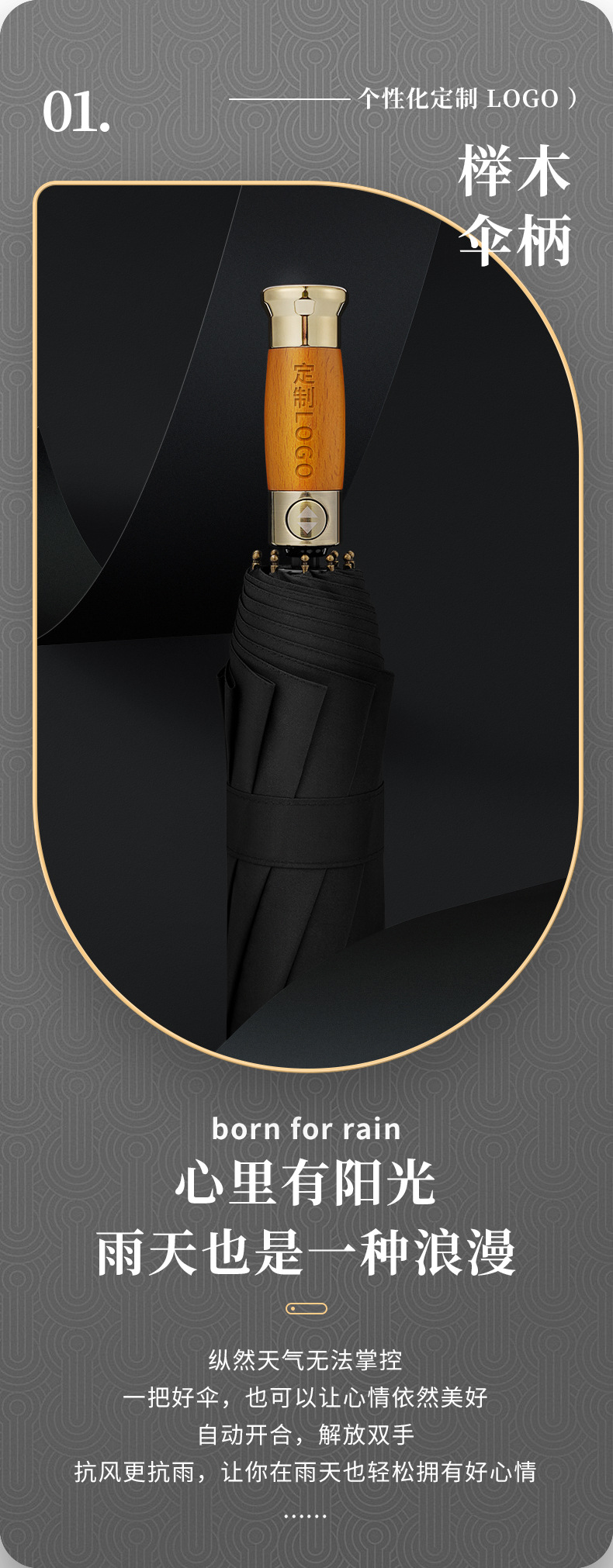 Paraguas de sol de mango de madera de lujo ligero totalmente automático paraguas de sol de gran tamaño para hombres tres anuncios plegables de negocios paraguas de regalo se pueden imprimir