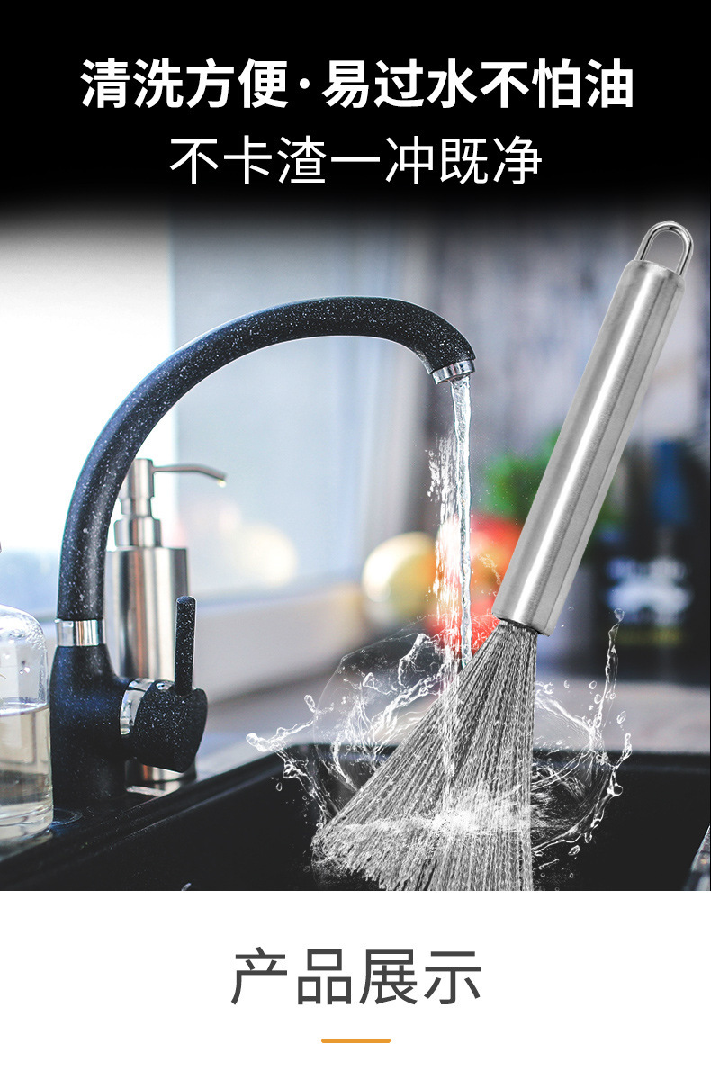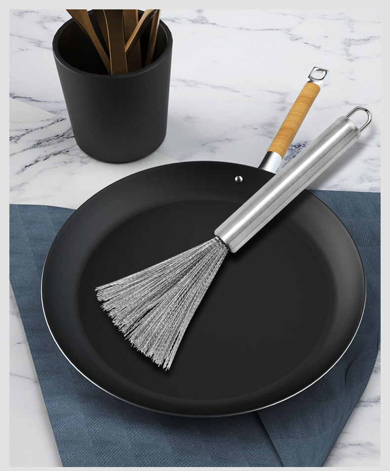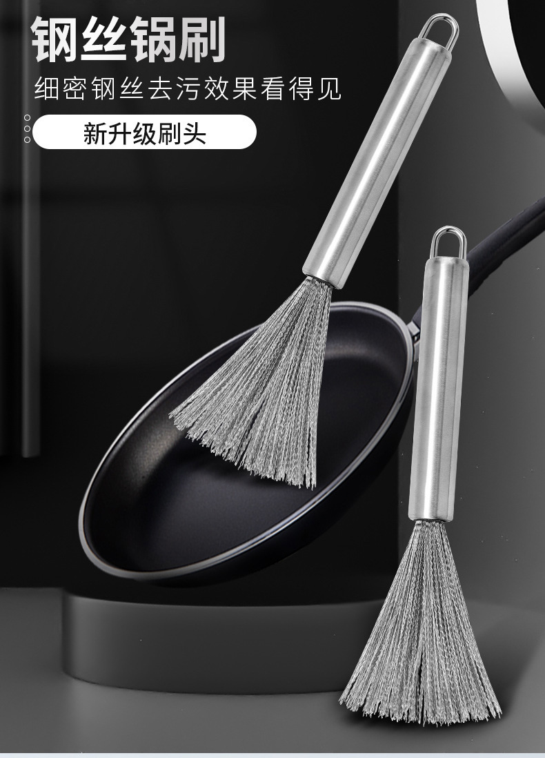 Cepillo de olla de acero inoxidable, cepillo de olla de mango largo especial para la cocina, cepillo de olla, cepillo de olla, cepillo de olla de limpieza de alambre de acero, cepillo de olla