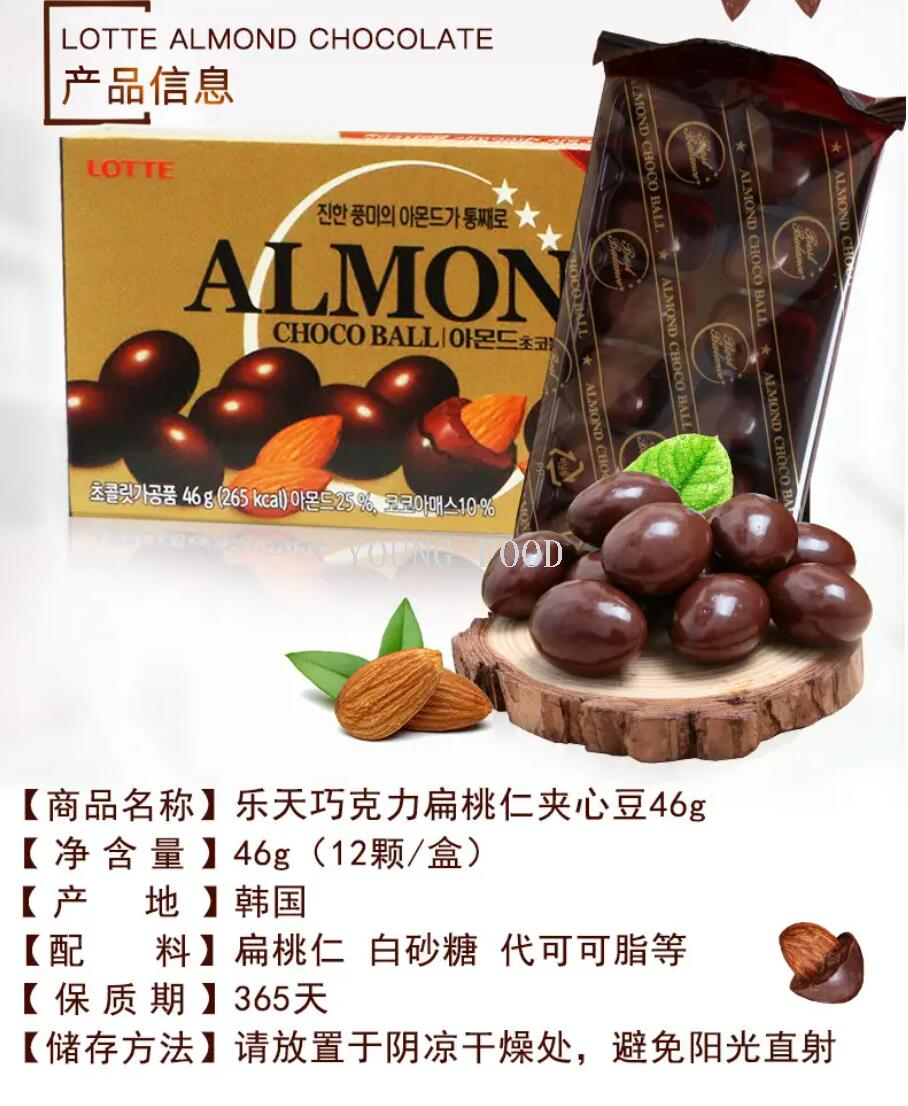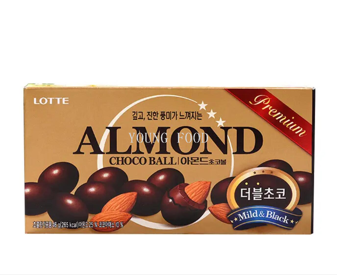 Envío al por mayor de alimentos de ocio importados de Corea del Sur dulces Lotte amígdalas en lugar de productos de chocolate con manteca de cacao 46g