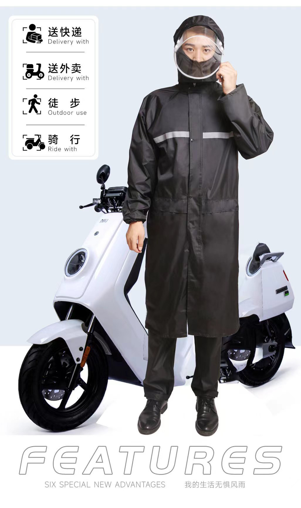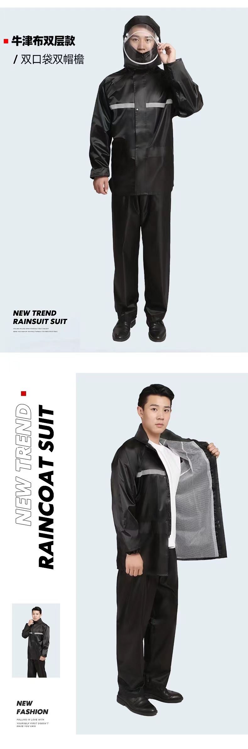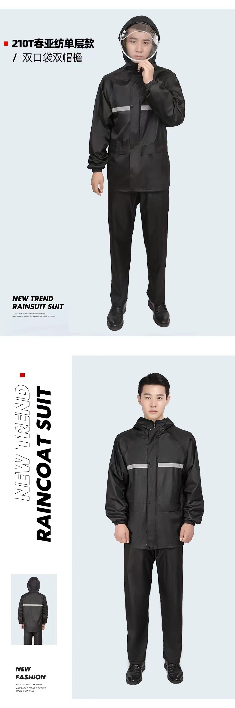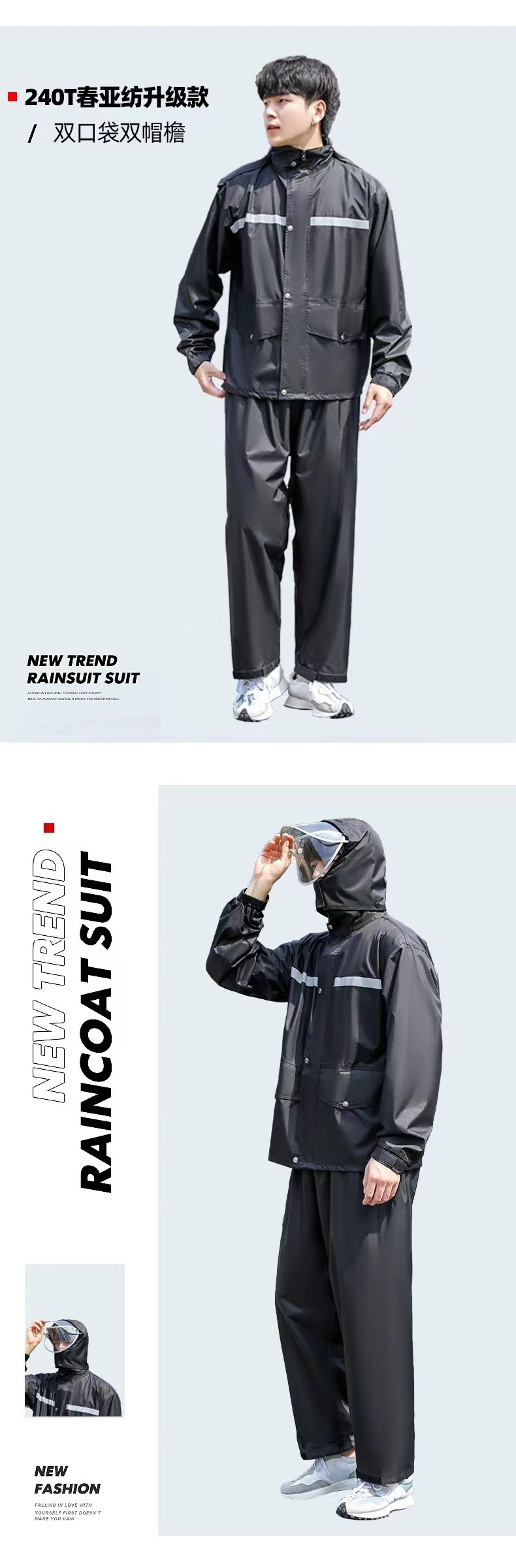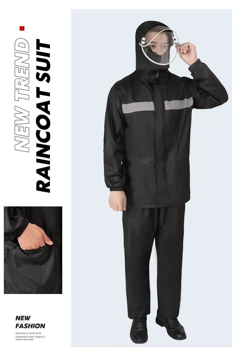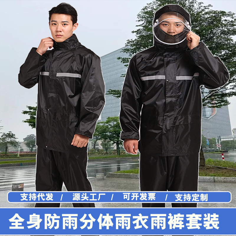 Impermeable y pantalones de lluvia conjuntos divididos reflejan la luz antes y después de la lluvia torrencial, motocicletas eléctricas engrosan impermeables de capucha al aire libre