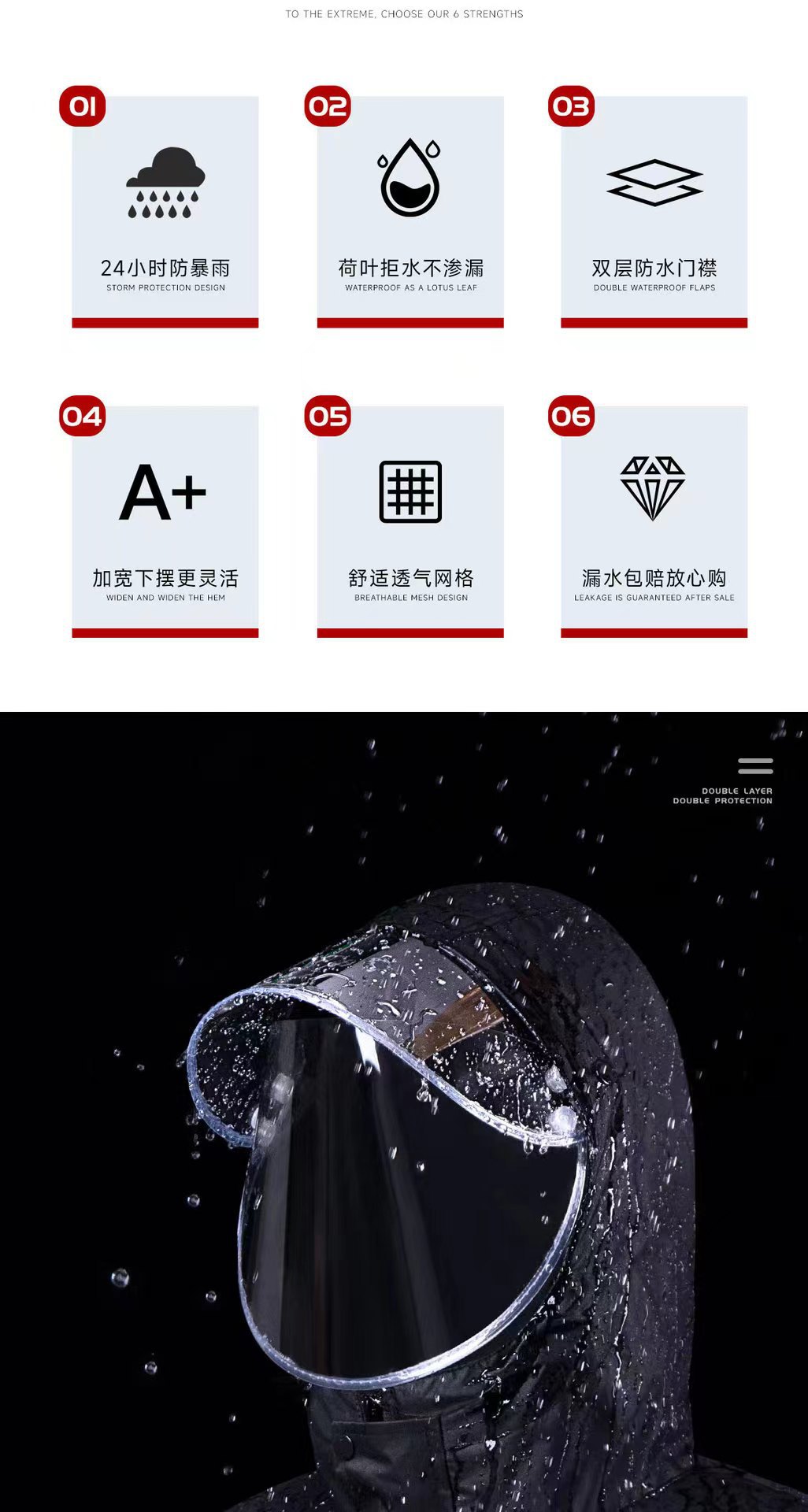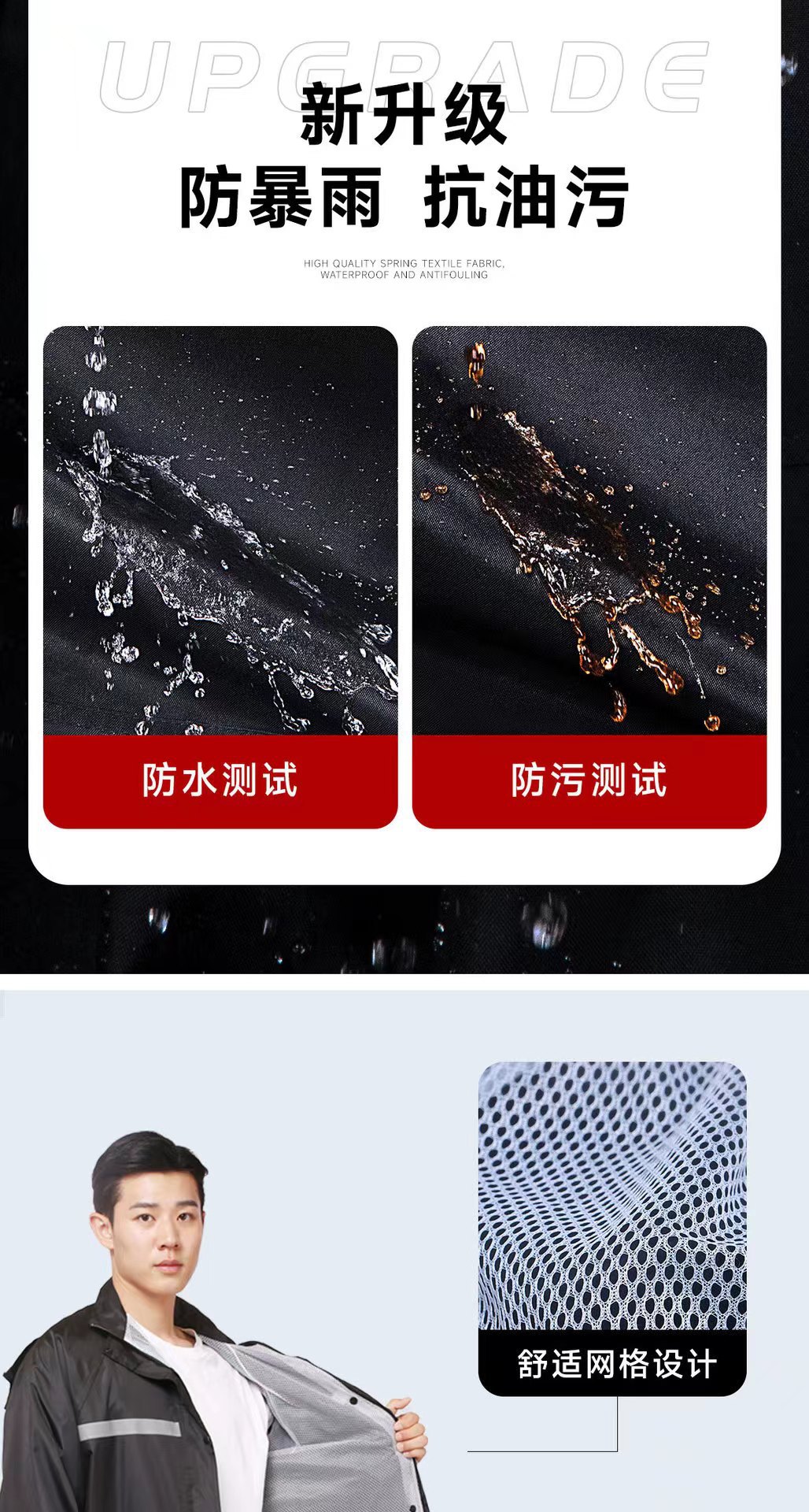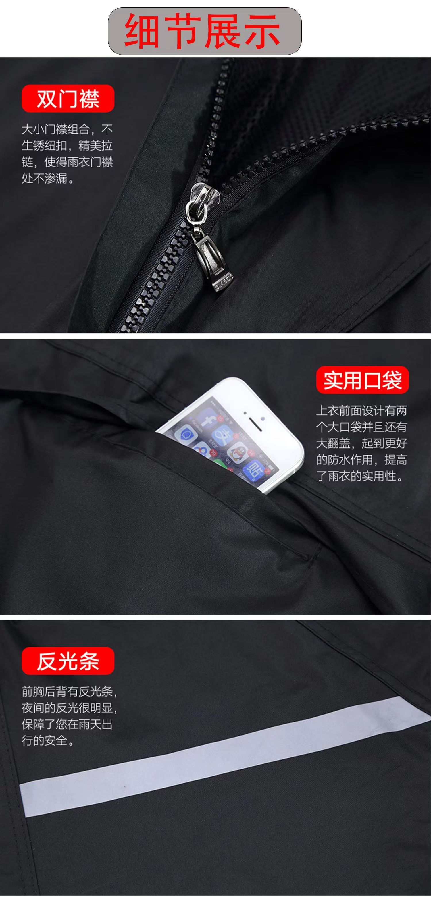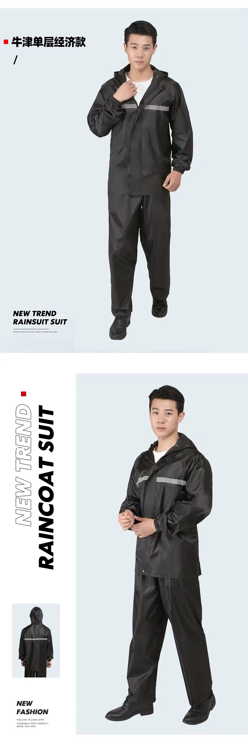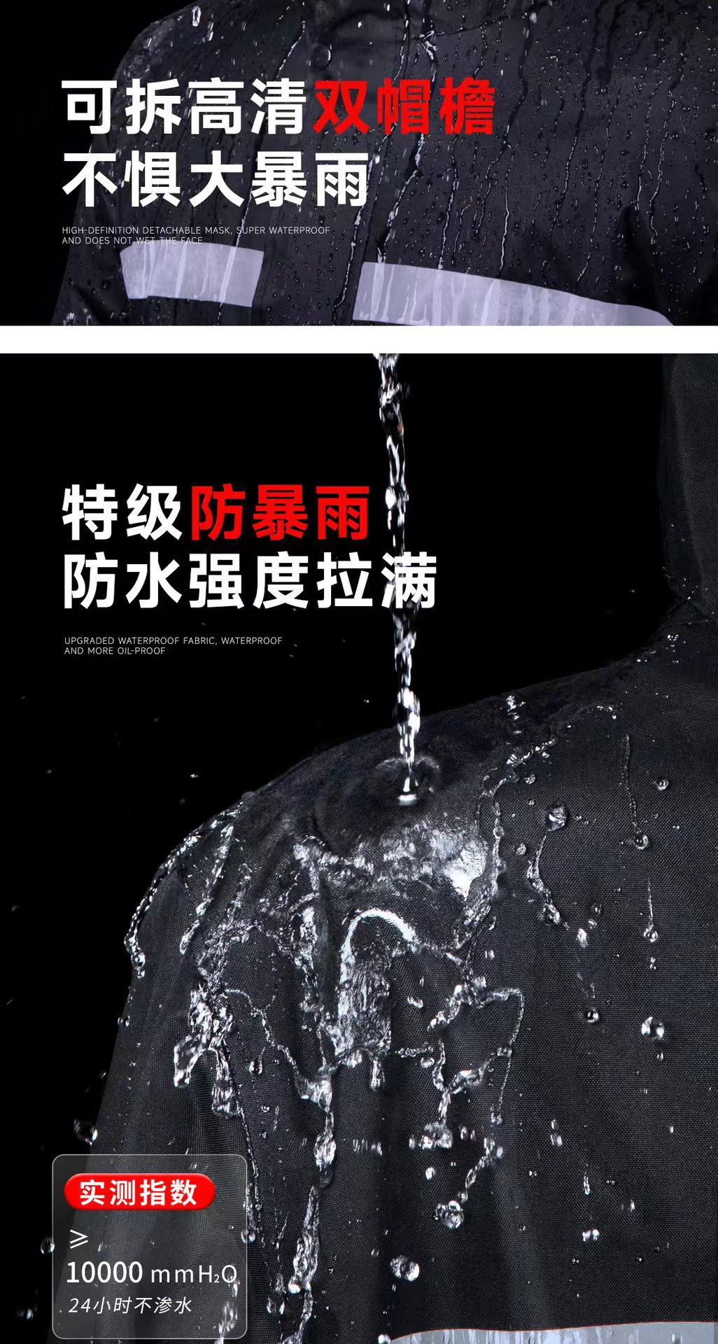 Impermeable y pantalones de lluvia conjuntos divididos reflejan la luz antes y después de la lluvia torrencial, motocicletas eléctricas engrosan impermeables de capucha al aire libre