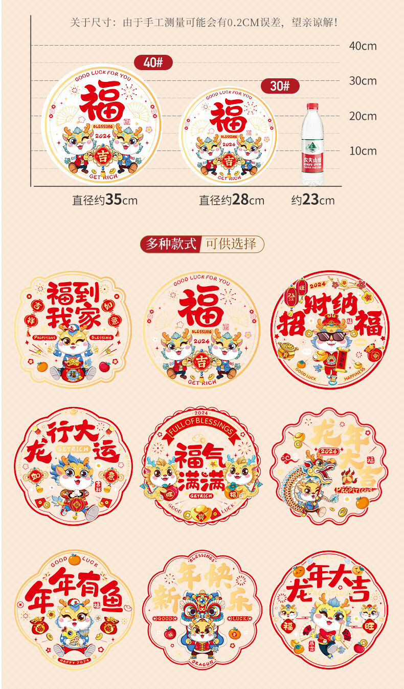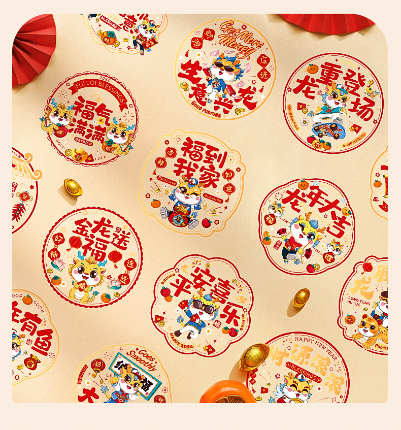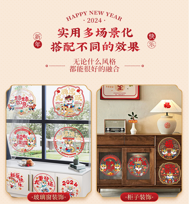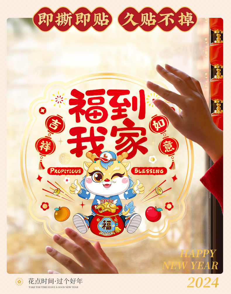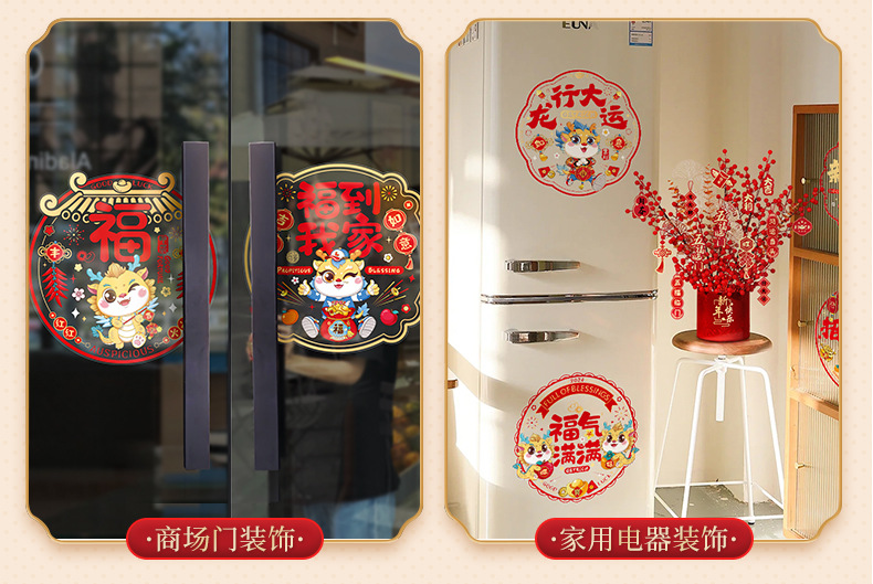 Flores de ventana de color del año nuevo del dragón 2024 pegatinas estáticas del Zodiaco del Festival de primavera pegatinas decorativas del año nuevo pegatinas de ventanas de dibujos animados del año nuevo