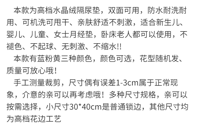 Almohadilla de aislamiento de orina de terciopelo de cristal de doble cara almohadilla de cuidado de ancianos para recién nacidos impermeable, transpirable y lavable a máquina