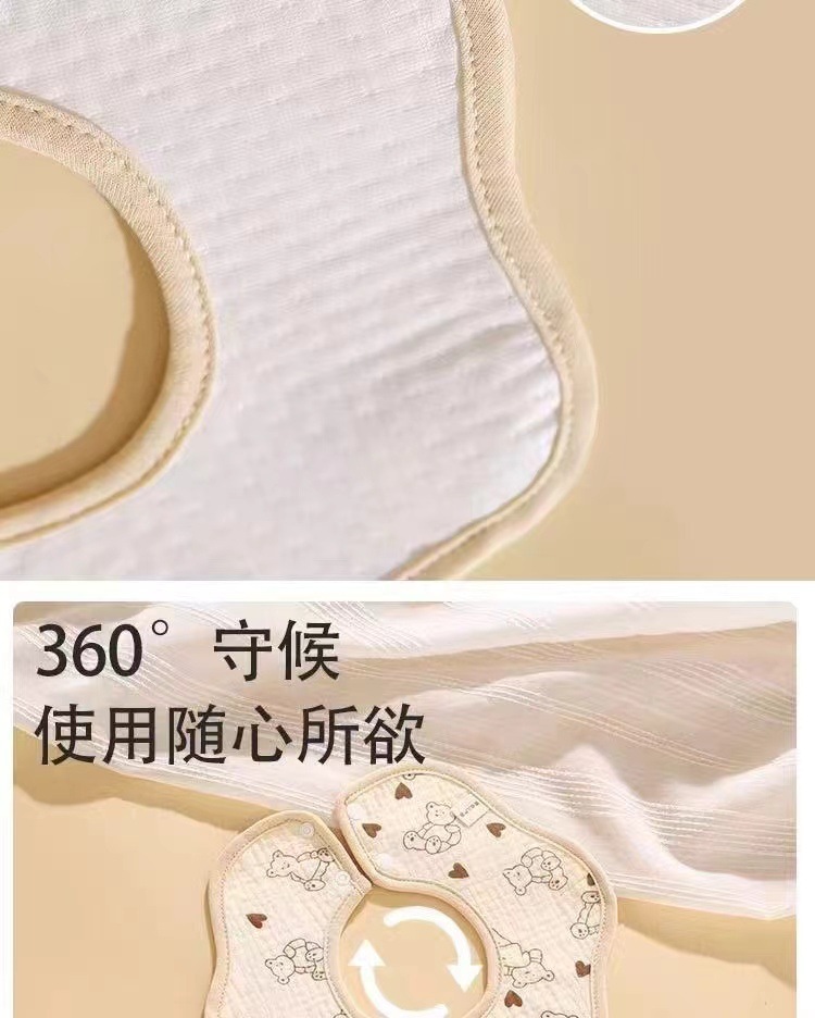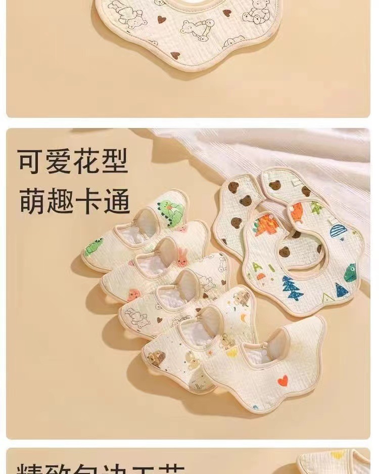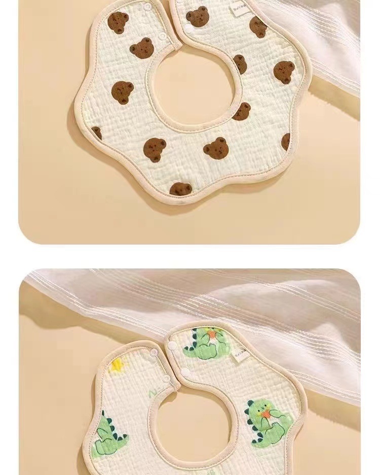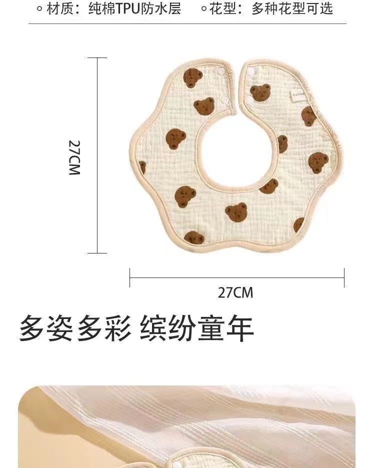 Babero de algodón puro para bebés clase a 360 rotación tpu toallas de escupitajo impermeables estampadas en dibujos animados babero de pétalos absorbentes de agua