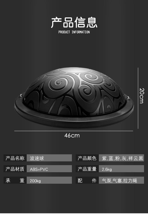 46 engrosamiento a prueba de explosiones bola de velocidad de equilibrio yoga Fitness hemisferio patrón antideslizante Pilates bola de fitness fabricante venta directa