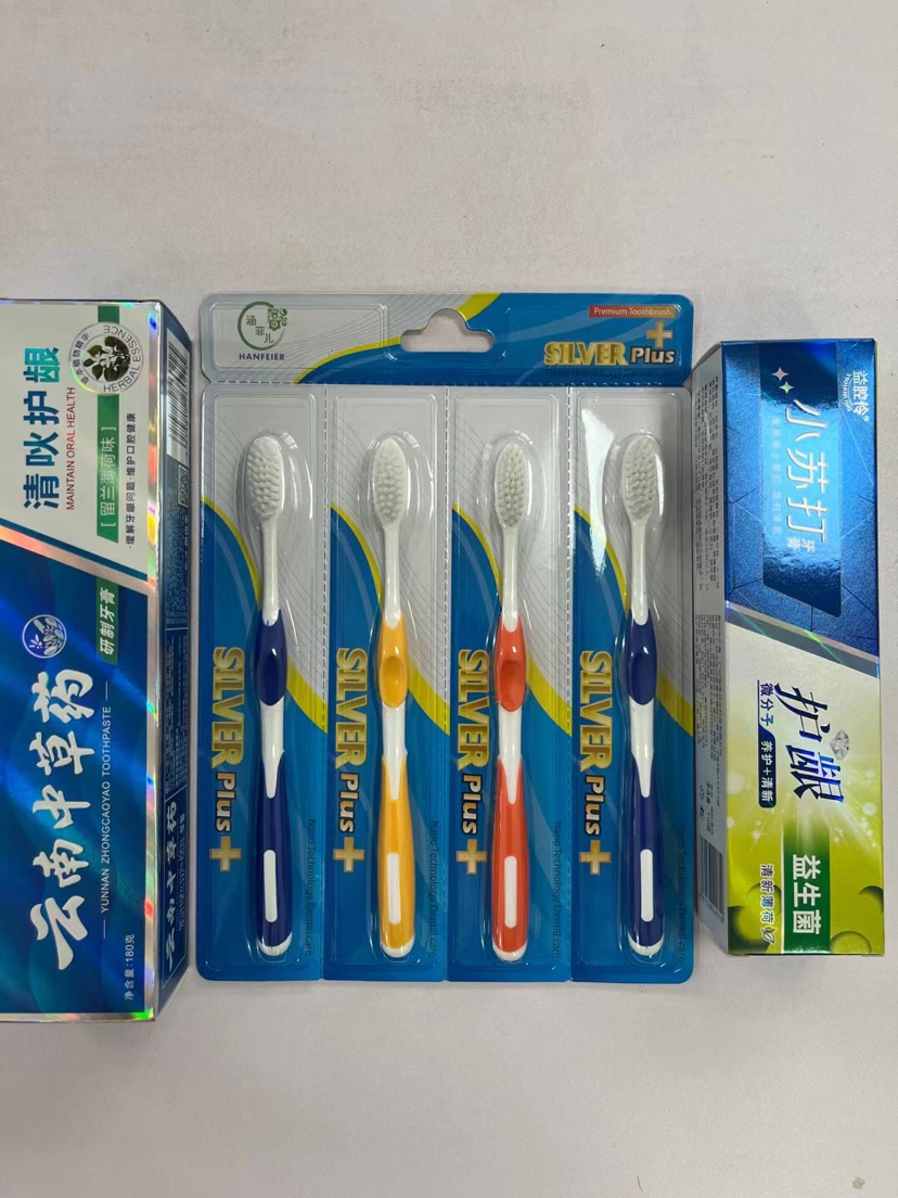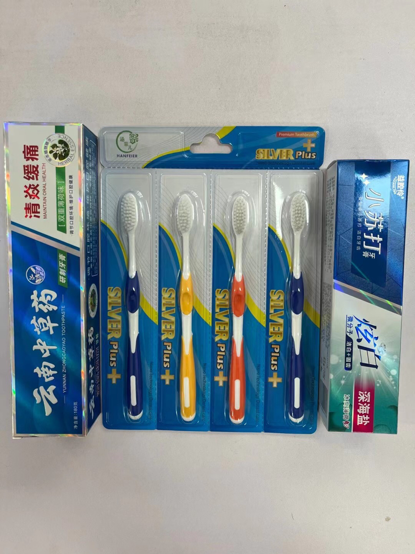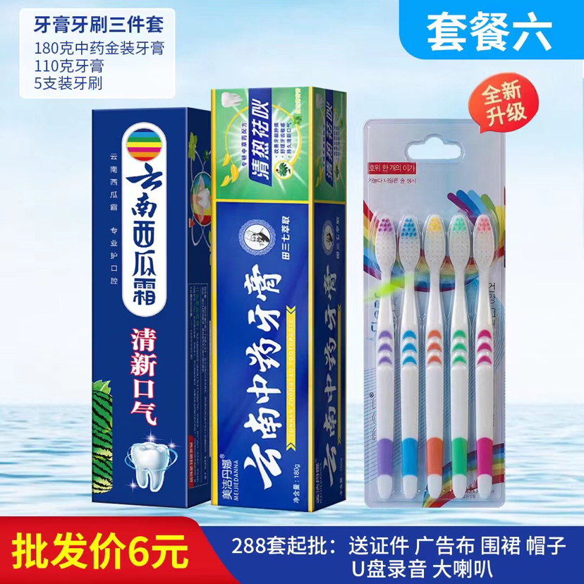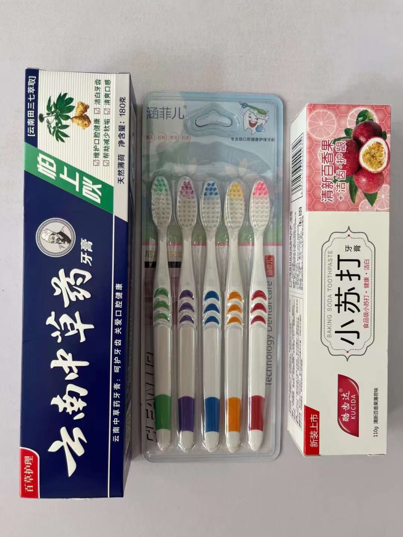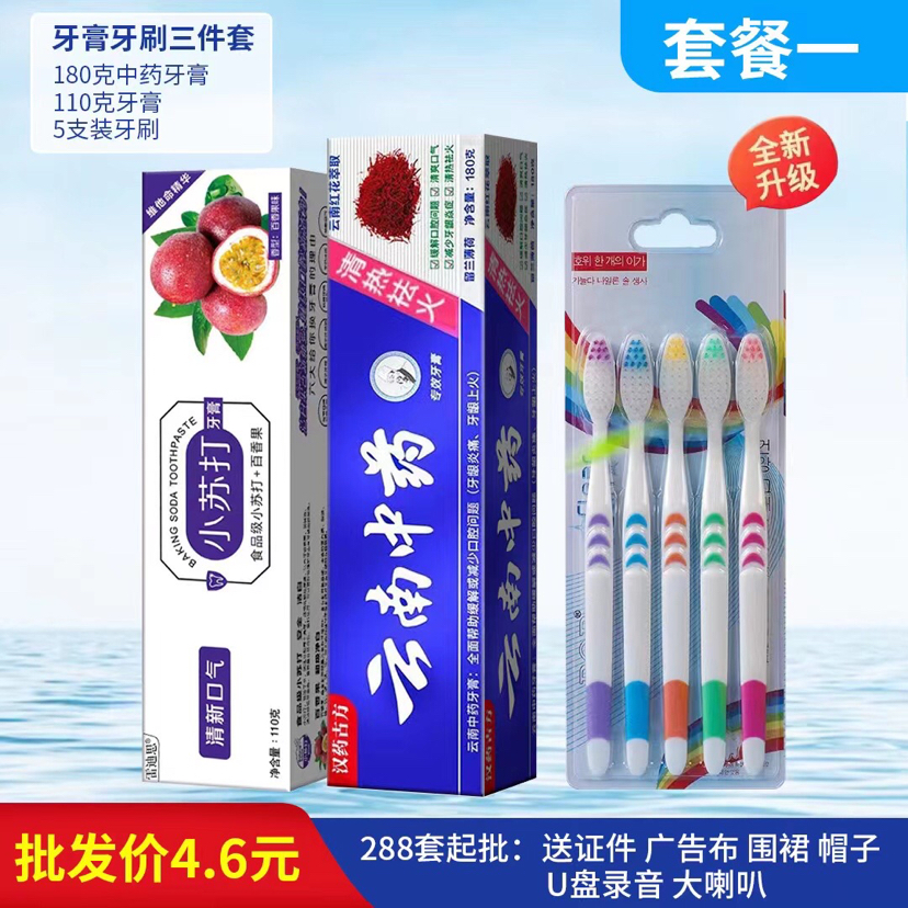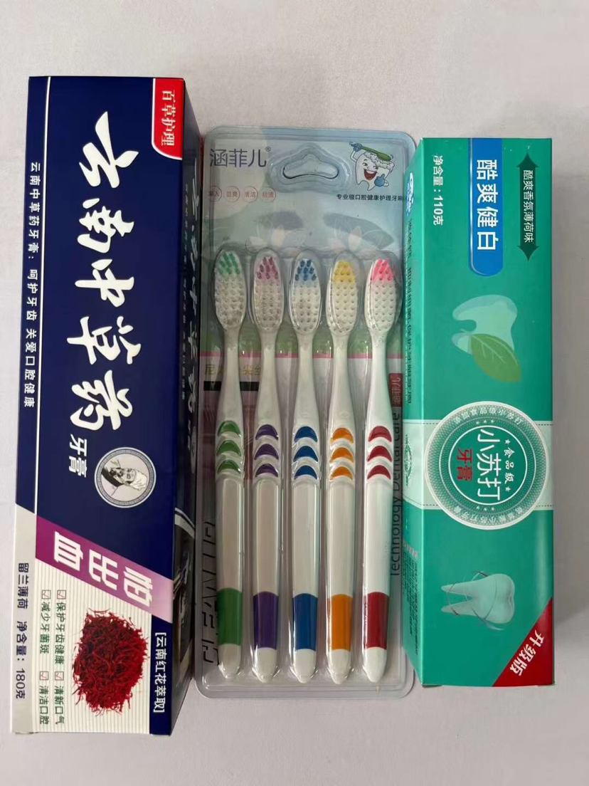 Puesto de venta al por mayor juego de pasta de dientes juego de cepillo de dientes nuevo juego de pasta de dientes tres juegos de pasta de dientes paquete de cepillo de dientes uno por uno