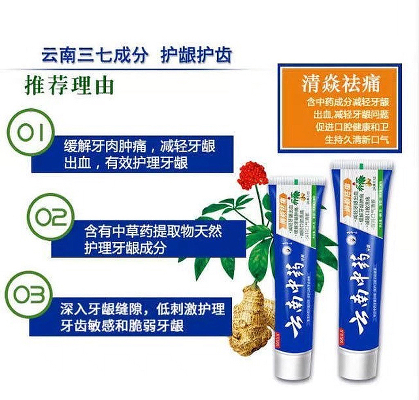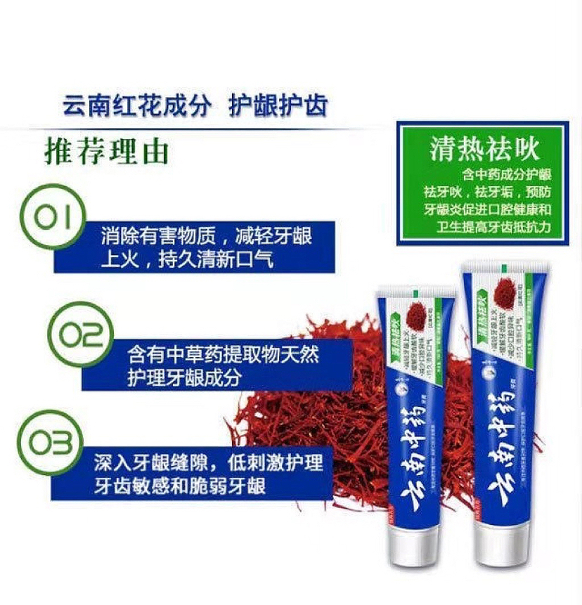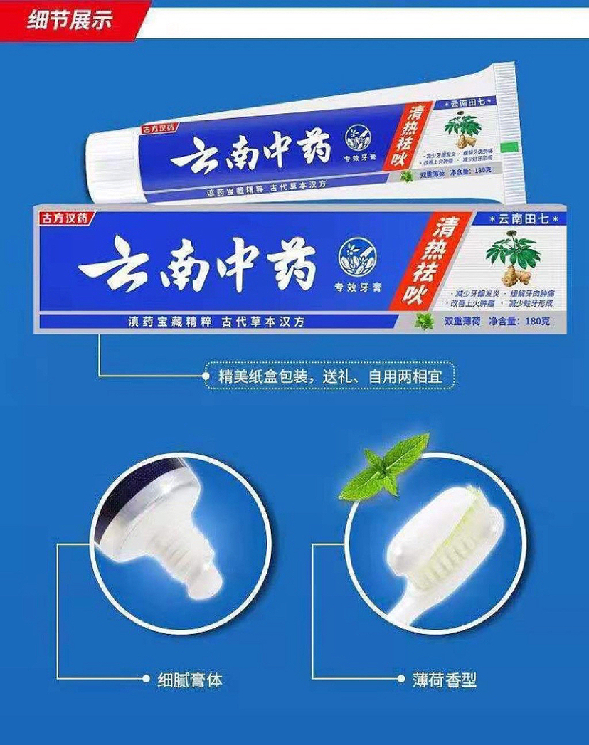 Pasta de dientes de Yunnan 180 gramos, informe de autoinspección de licencia comercial, calificaciones completas, venta directa del fabricante