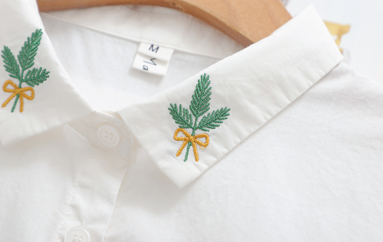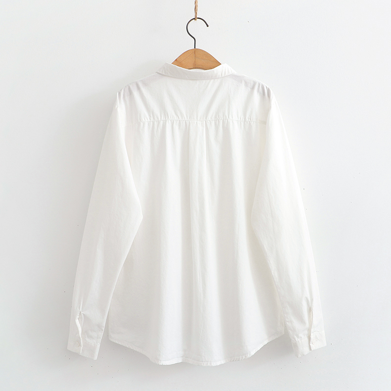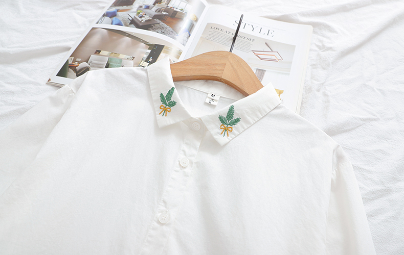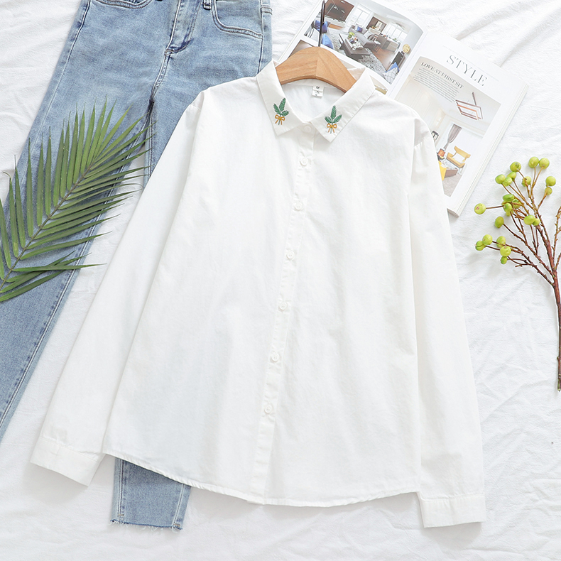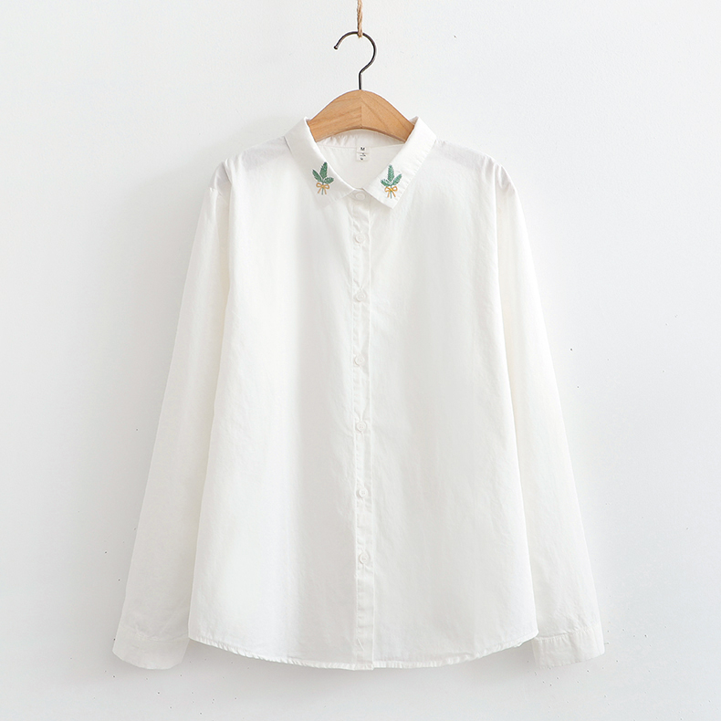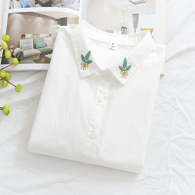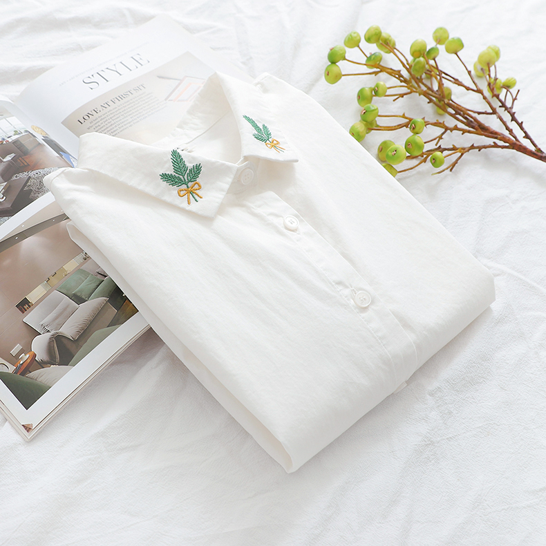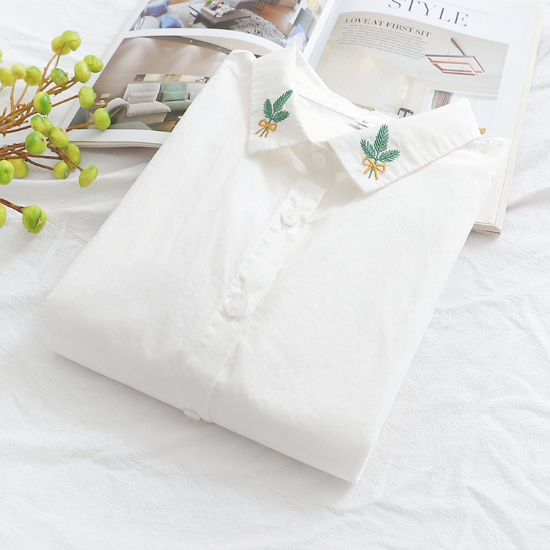 Comida literaria y artística japonesa pequeña camisa blanca fresca camisa blanca mujer de manga larga cuello bordado de algodón camisa de fondo blusa de otoño