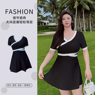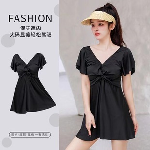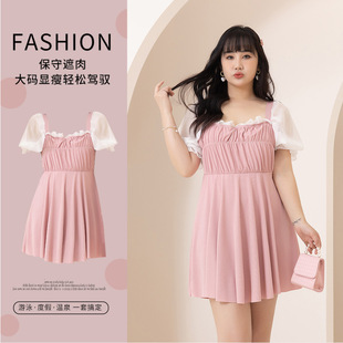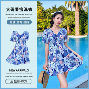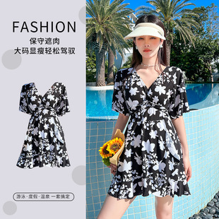 Traje de baño mm gordo, de gran tamaño, delgado, moda, vestido de baño de flores rotas, conjunto de traje de baño de madre conservadora al por mayor