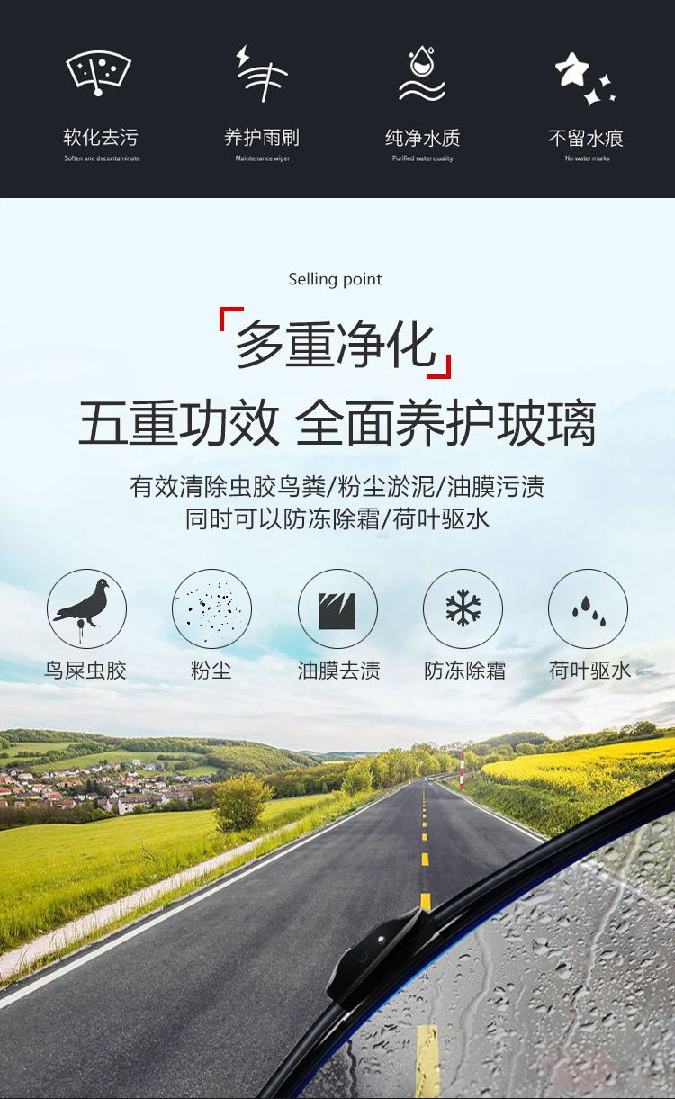 En verano, el agua de vidrio para vehículos tiene una fuerte descontaminación, eliminación de insectos, aceite de vidrio, agua de lavado, limpiaparabrisas y tanques completos.