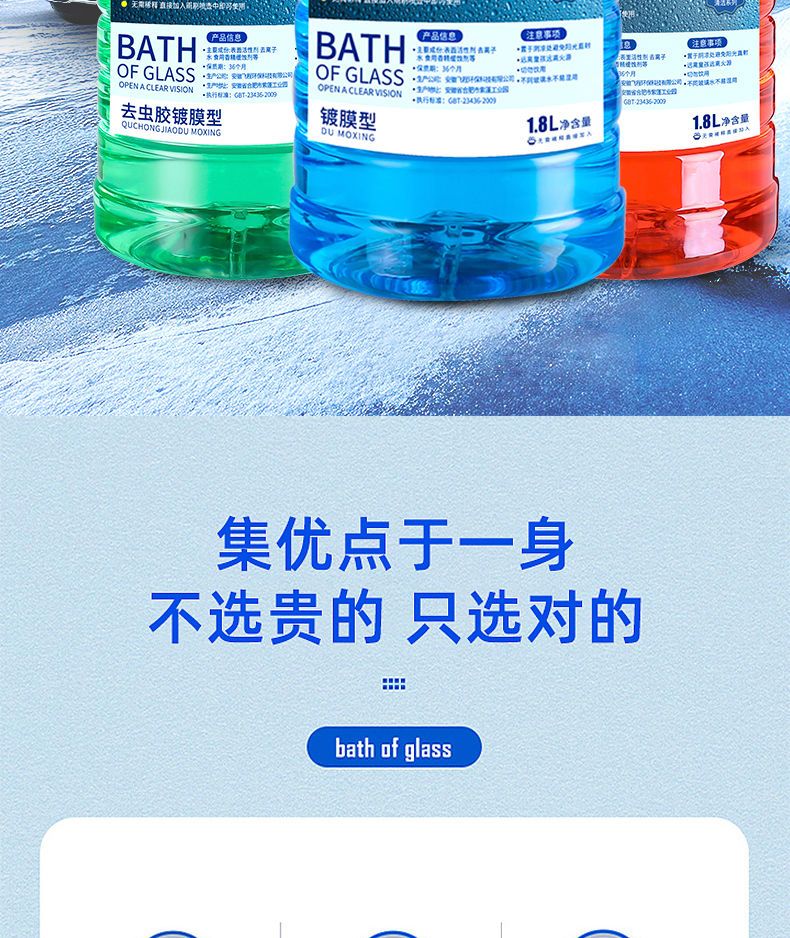 1.8l película de eliminación de aceite de agua de vidrio descontaminada, cristal chapado a prueba de lluvia, cuatro estaciones de limpieza general de vidrio, limpiaparabrisas de verano