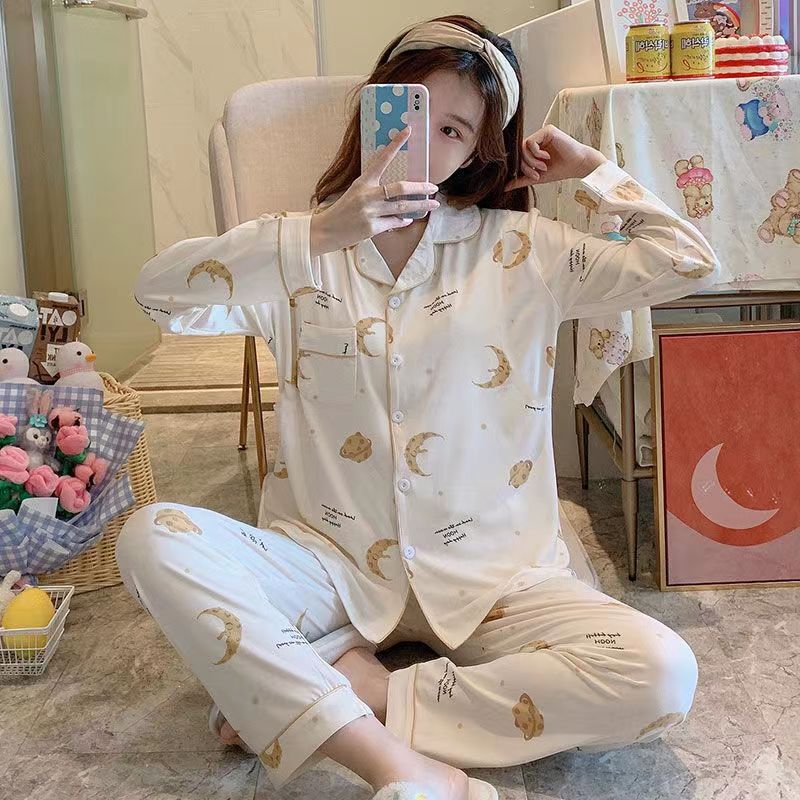 En 2023, el nuevo pijama para mujeres de primavera y otoño tiene mangas largas y delgadas, y grandes tallas se pueden usar fuera de la casa de su madre de mediana edad en otoño e invierno.