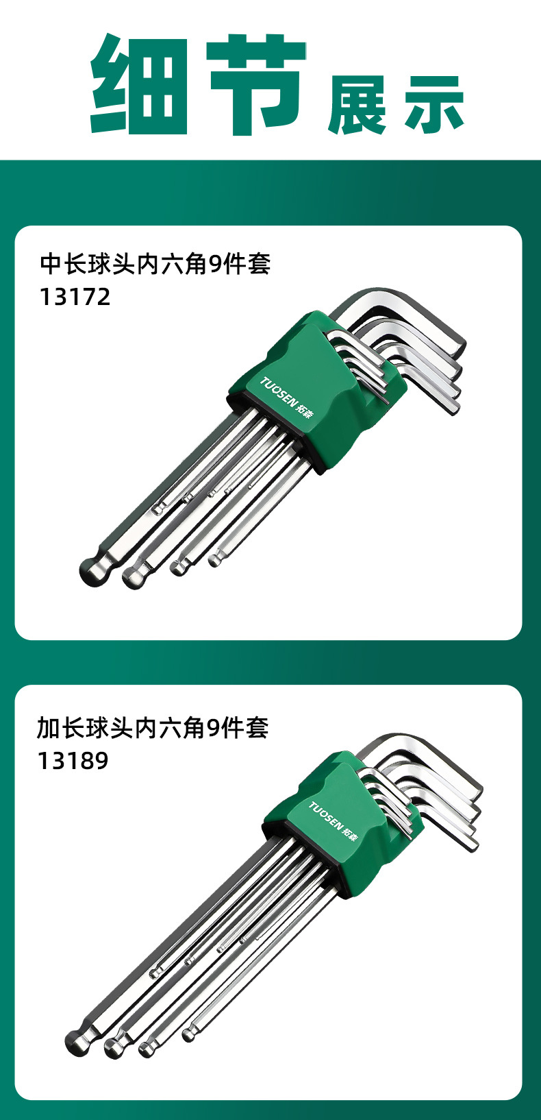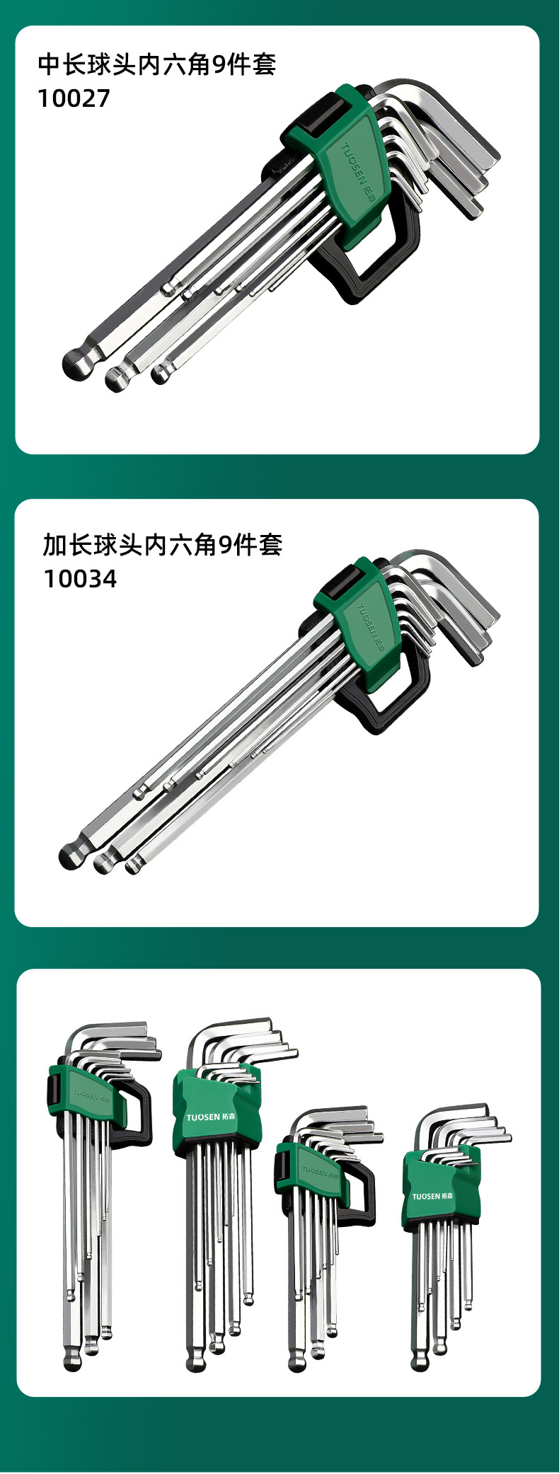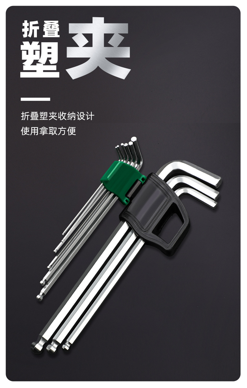 La herramienta tuosen alarga el destornillador hexagonal interior 9 piezas, la cabeza de la bola, la llave hexagonal interior en forma de l, la llave hexagonal interior