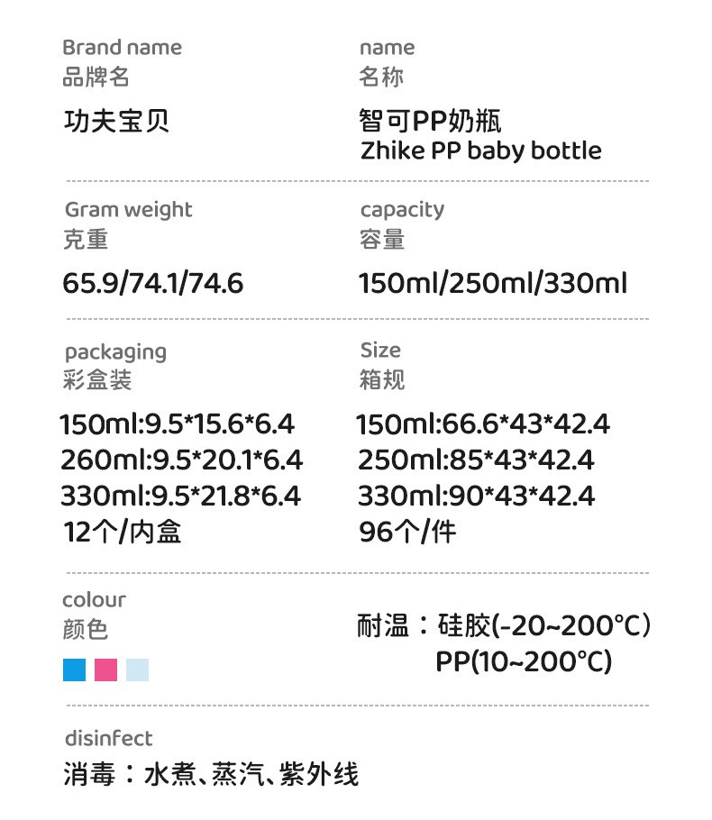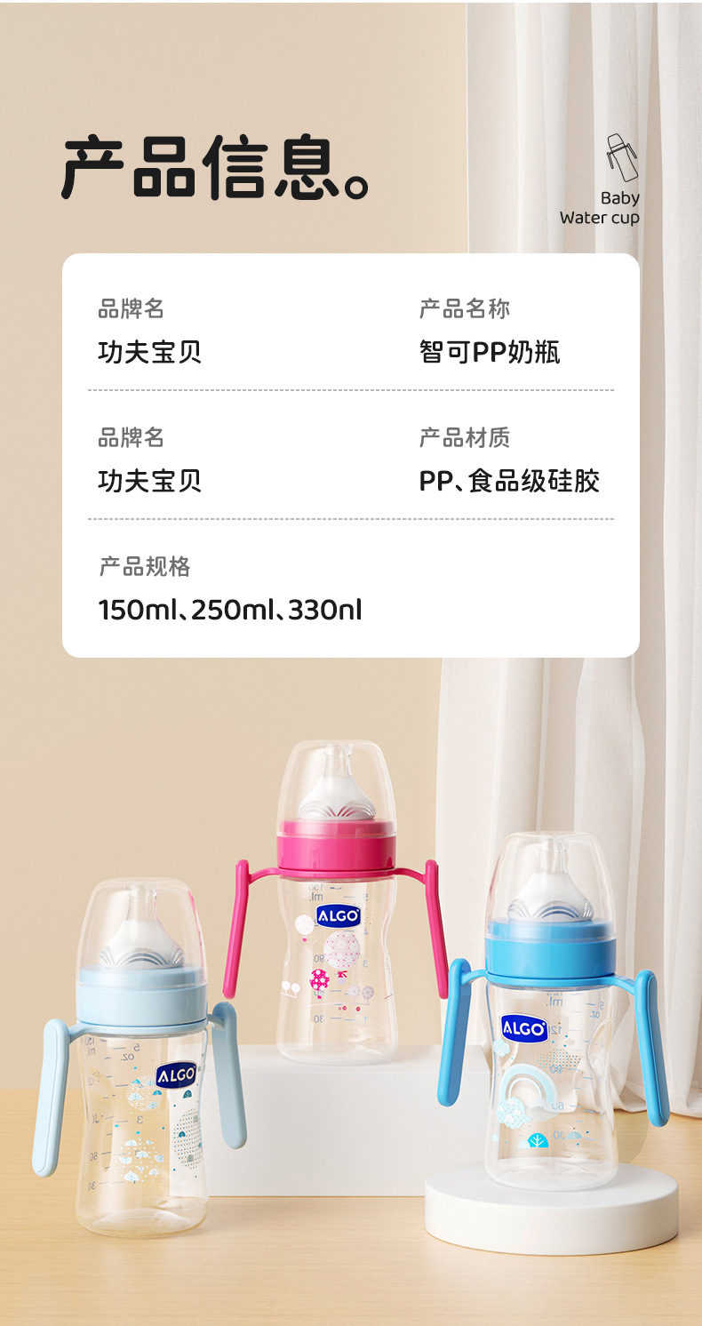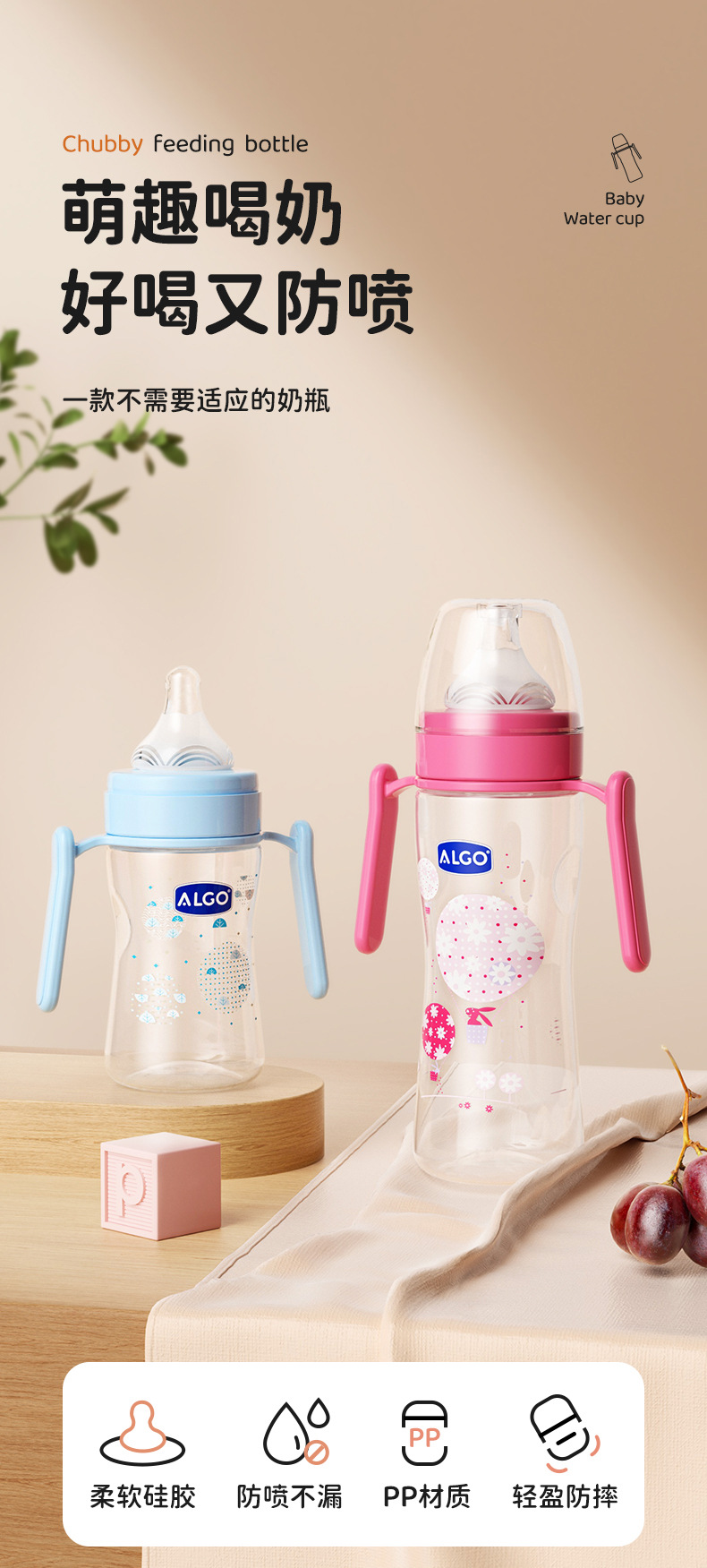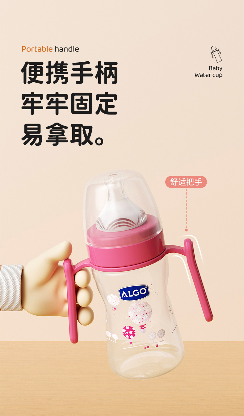Biberón neonatal de bebé Argo PP de calibre ancho con mango antiflatulencia 150 / 250 / 330ml biberón de plástico