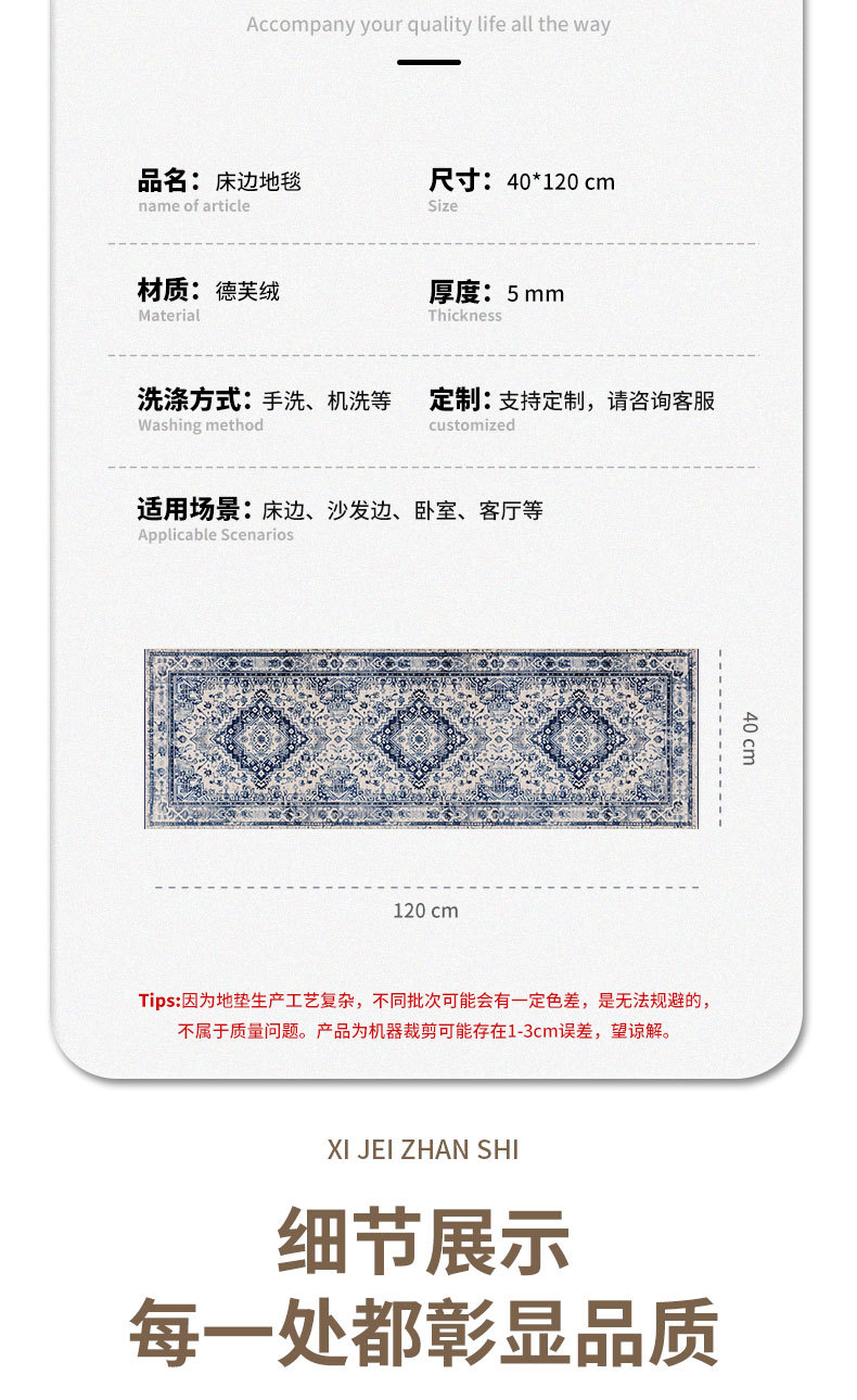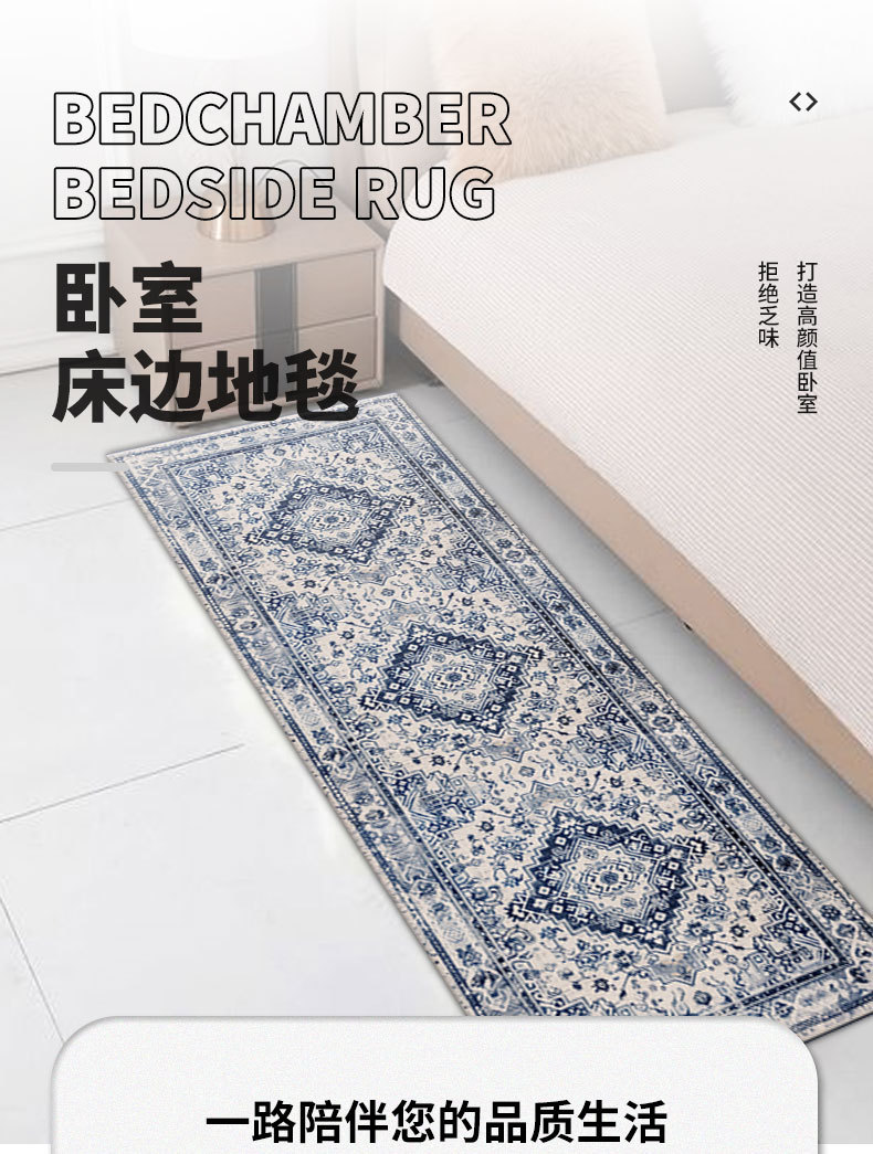 La alfombra lateral de la cama de terciopelo de Dev engrosa la alfombra de absorción de agua antideslizante, el suelo del dormitorio está acolchado con estilo nacional y tiras largas se pueden lavar con agua tpr.