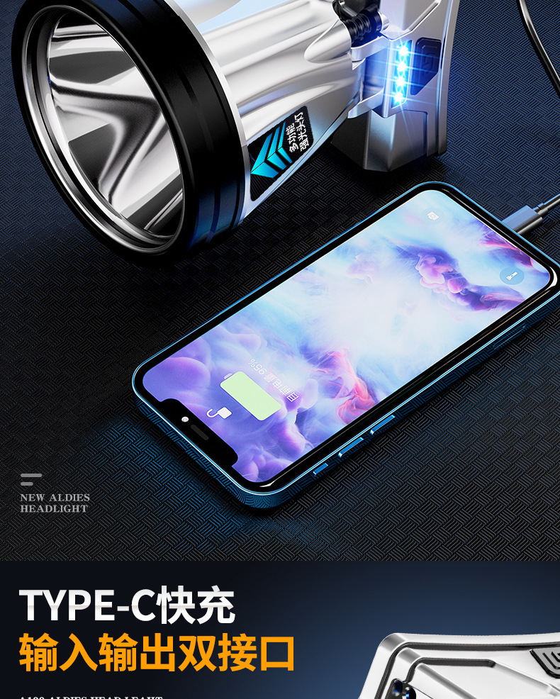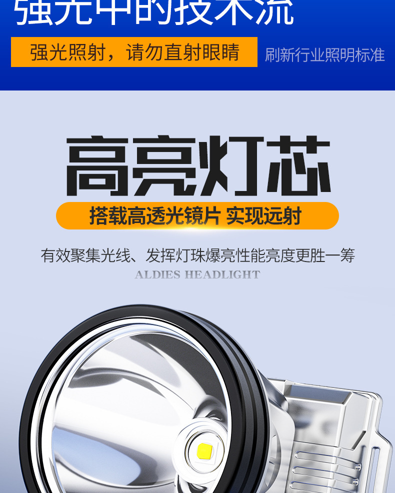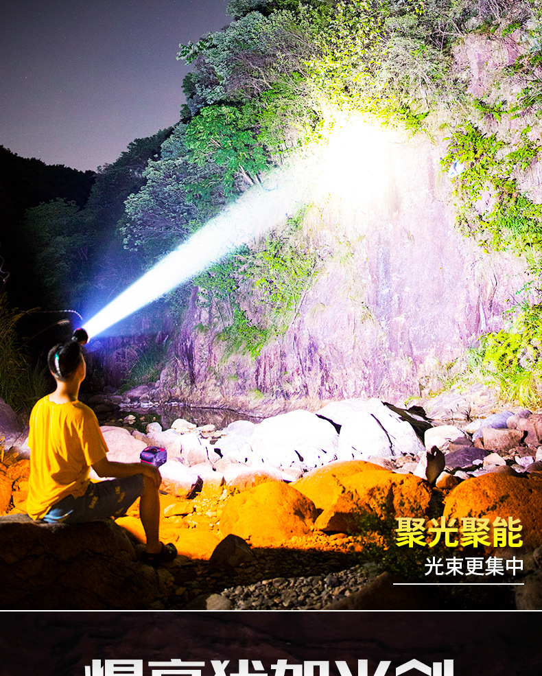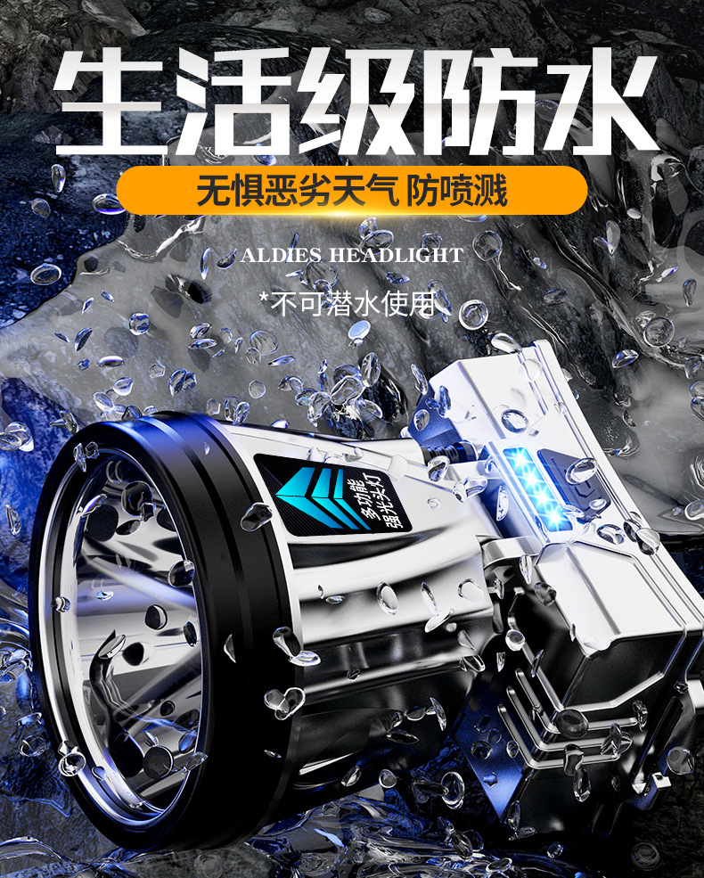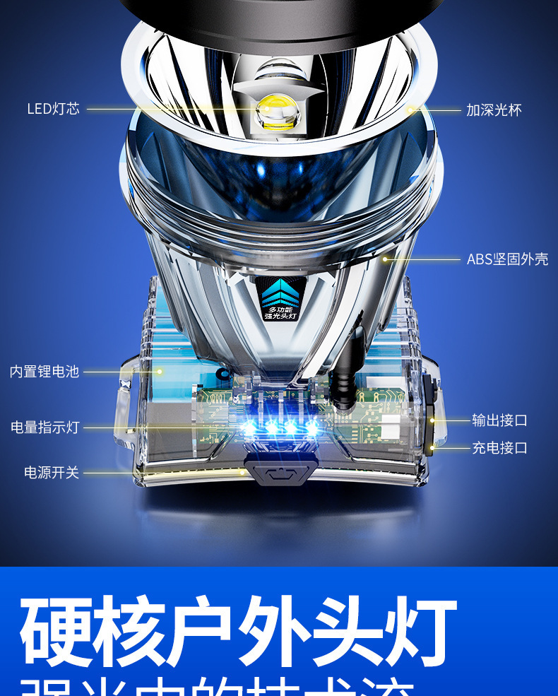 Explosión transfronteriza de larga duración, luz de cabeza calva fuerte, luz de cabeza led, carga nocturna, lámpara de pesca nocturna, campamento al aire libre, linterna de exploración