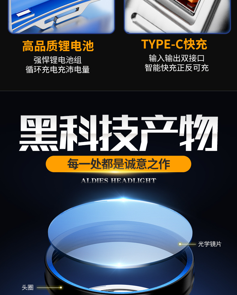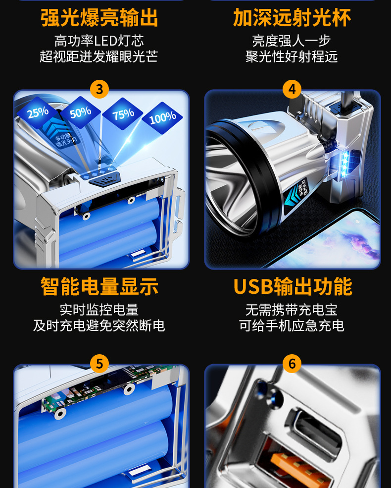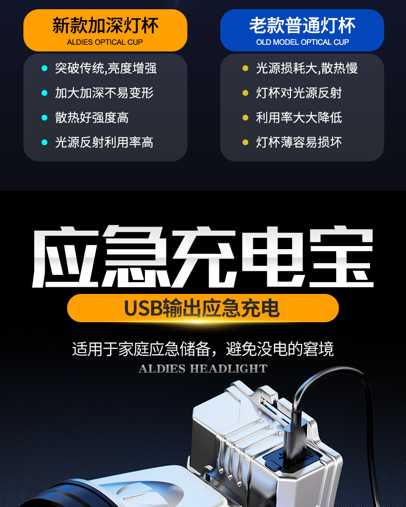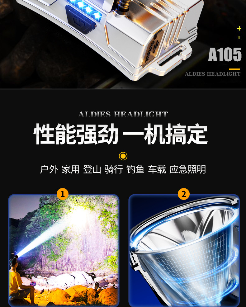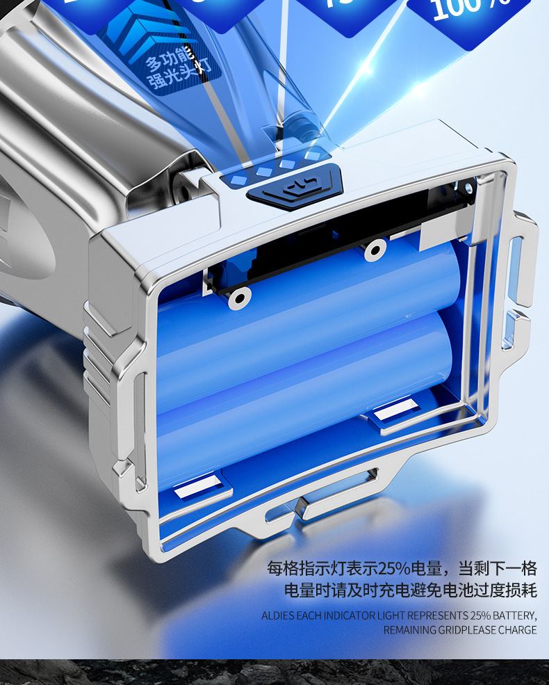 Explosión transfronteriza de larga duración, luz de cabeza calva fuerte, luz de cabeza led, carga nocturna, lámpara de pesca nocturna, campamento al aire libre, linterna de exploración