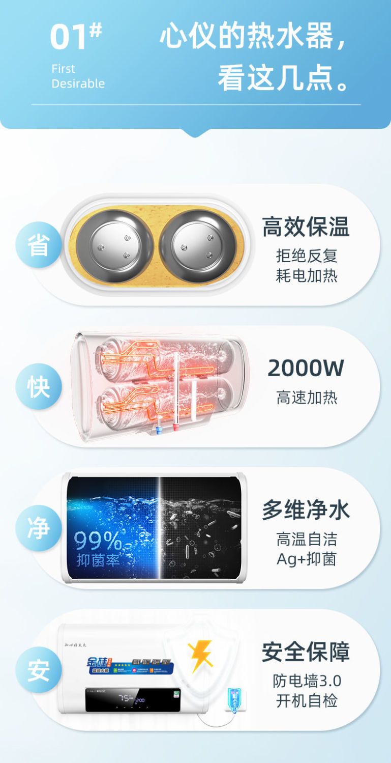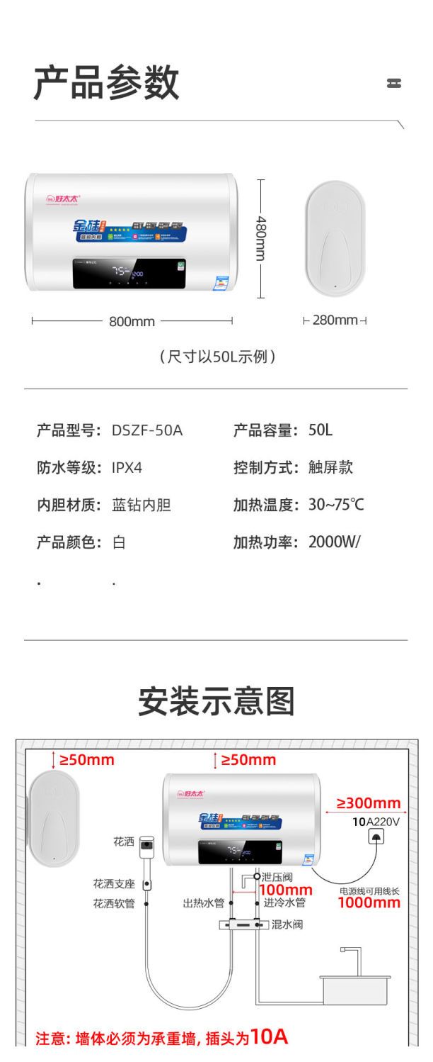 Buena esposa [instalación puerta a puerta] calentador de agua eléctrico baño doméstico ahorro de electricidad pequeño 40 / 50 / 60 L / 80 l
