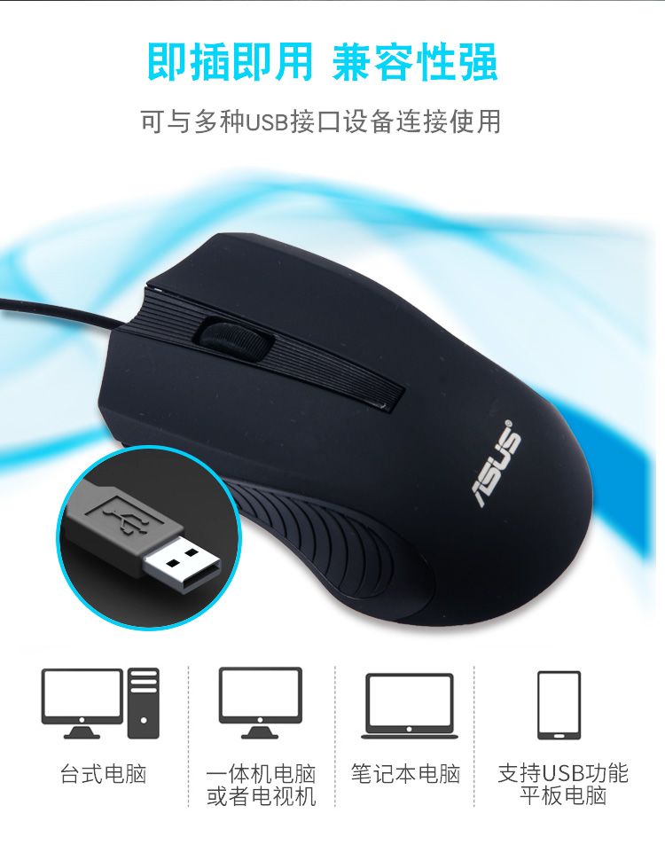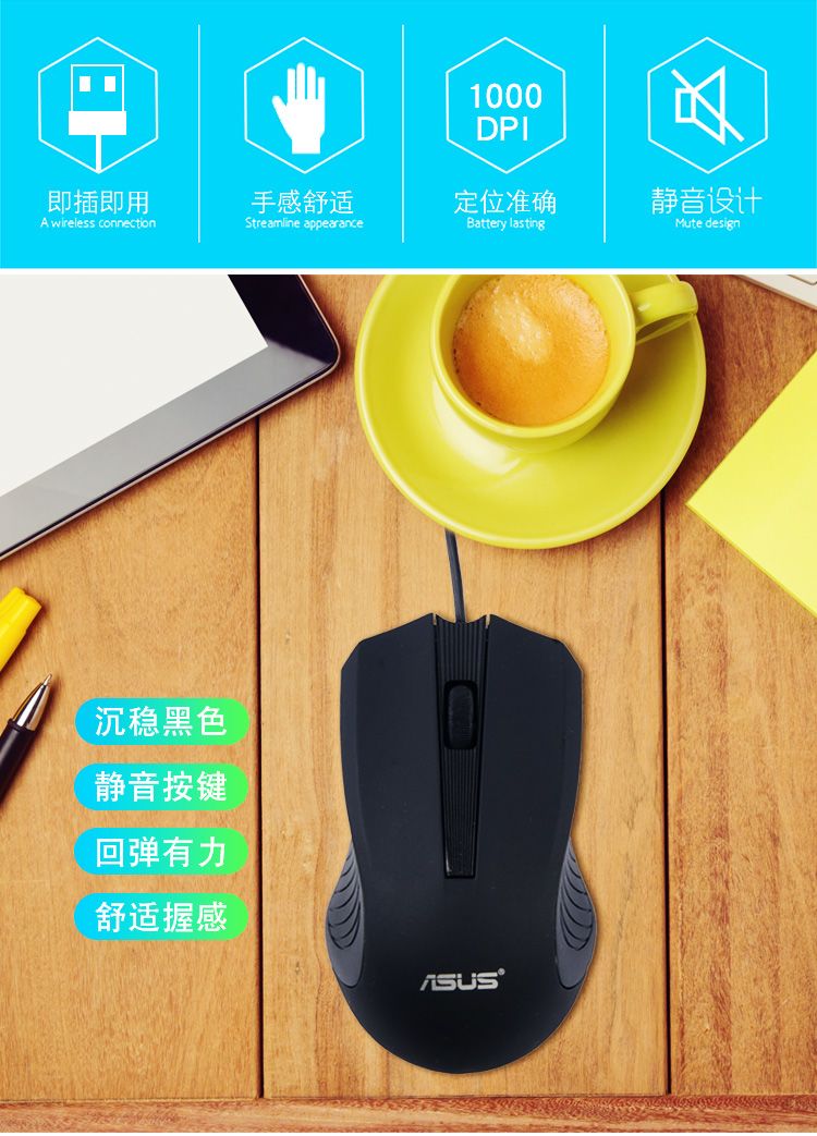 ASUS / Asus mouse cable silencioso ratón fotoeléctrico USB portátil computadora de escritorio ratón de oficina universal