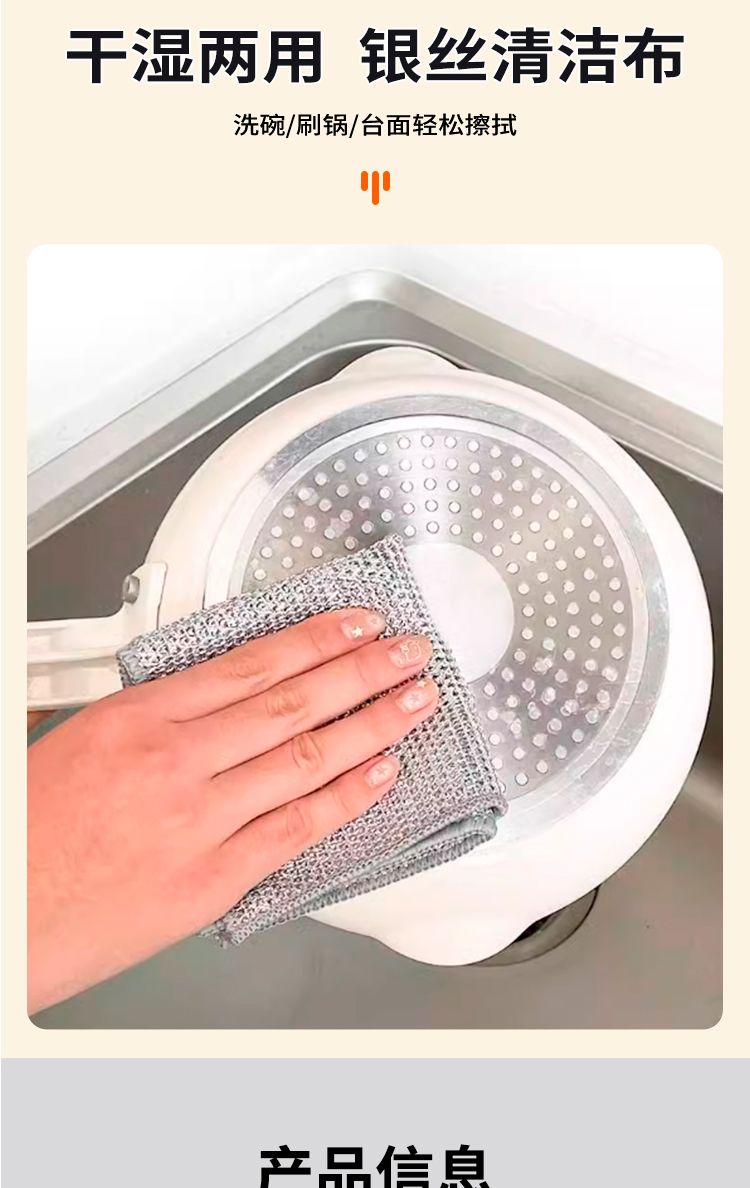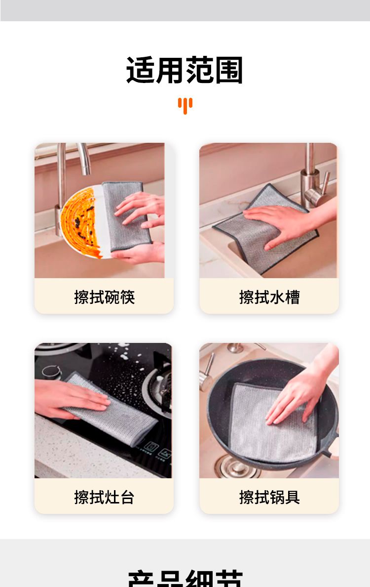 Lavar los platos con fuerza, limpiar la cocina, lavar los platos, limpiar la estufa y reemplazar la bola de acero con tela de lavado de platos de plata de doble Cara.