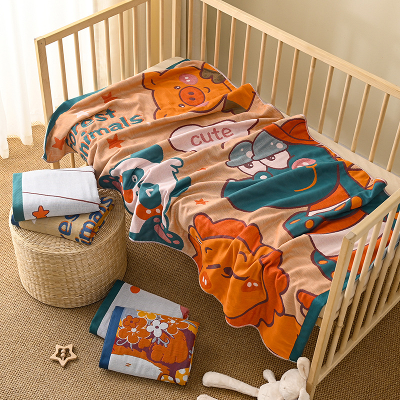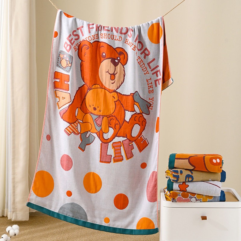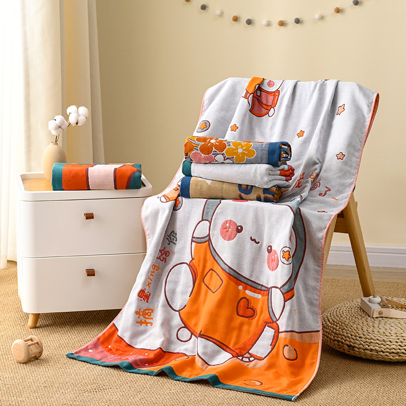 Cinco capas de toallas de baño de gasa aumentan las toallas de baño de dibujos animados de algodón, los niños se bañan, nadan, las toallas de playa, los bebés se secan rápidamente y las toallas de baño absorbentes de agua.