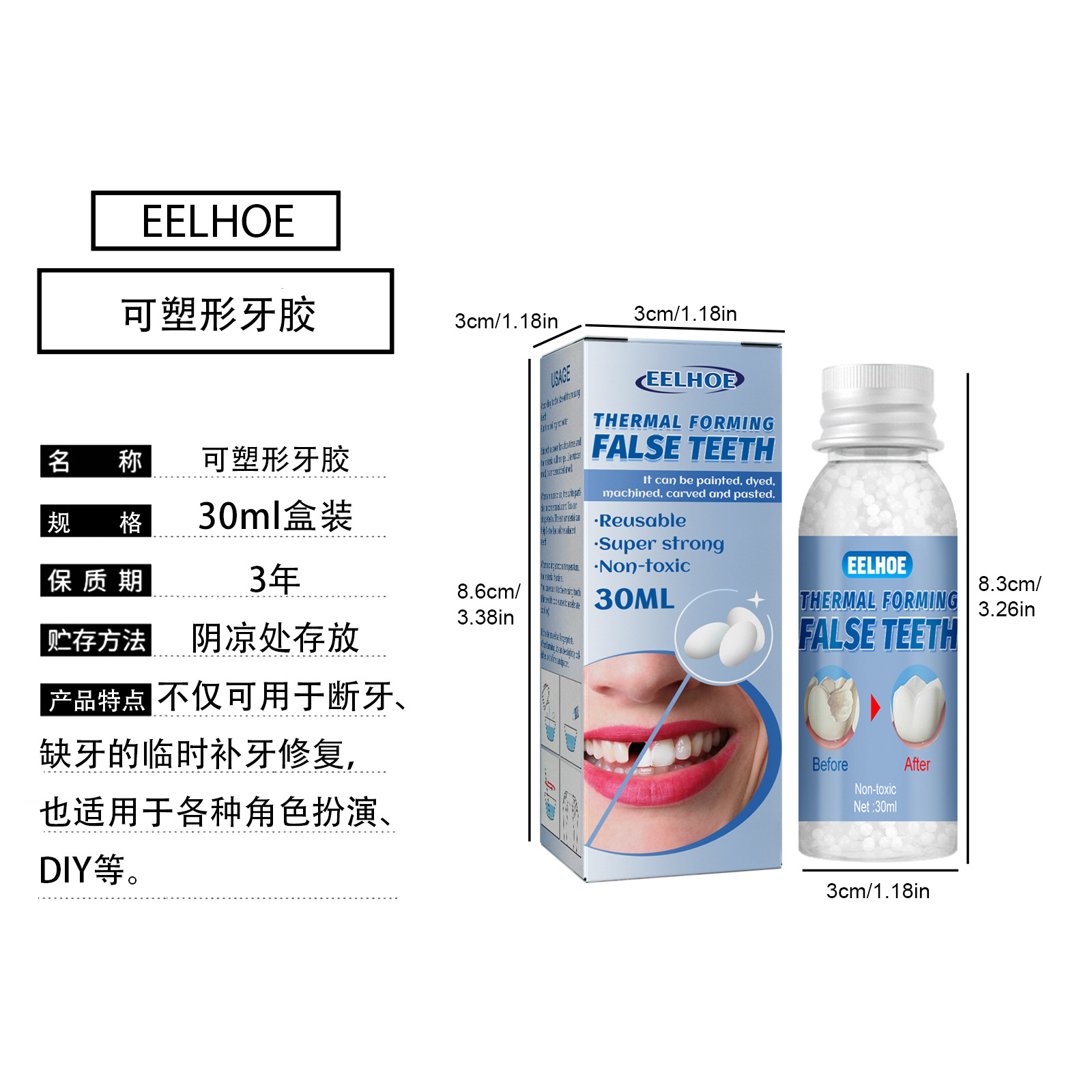 Eelhoe puede moldear pegamento dental, maquillaje de cine y televisión, modificación de dentaduras postizas, refuerzo temporal de dientes, pegamento dental, agujero dental y relleno dental.