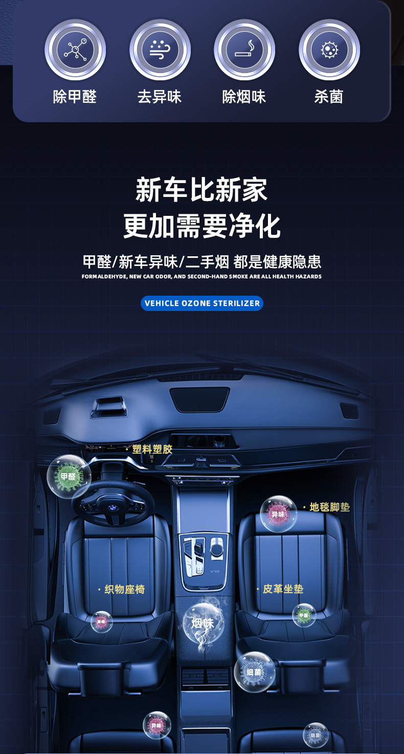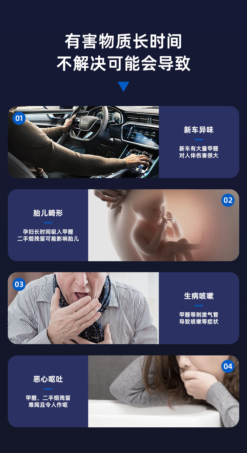 Purificador de aire a bordo, artículos automotrices, vehículos nuevos en el automóvil eliminan olores y formaldehído