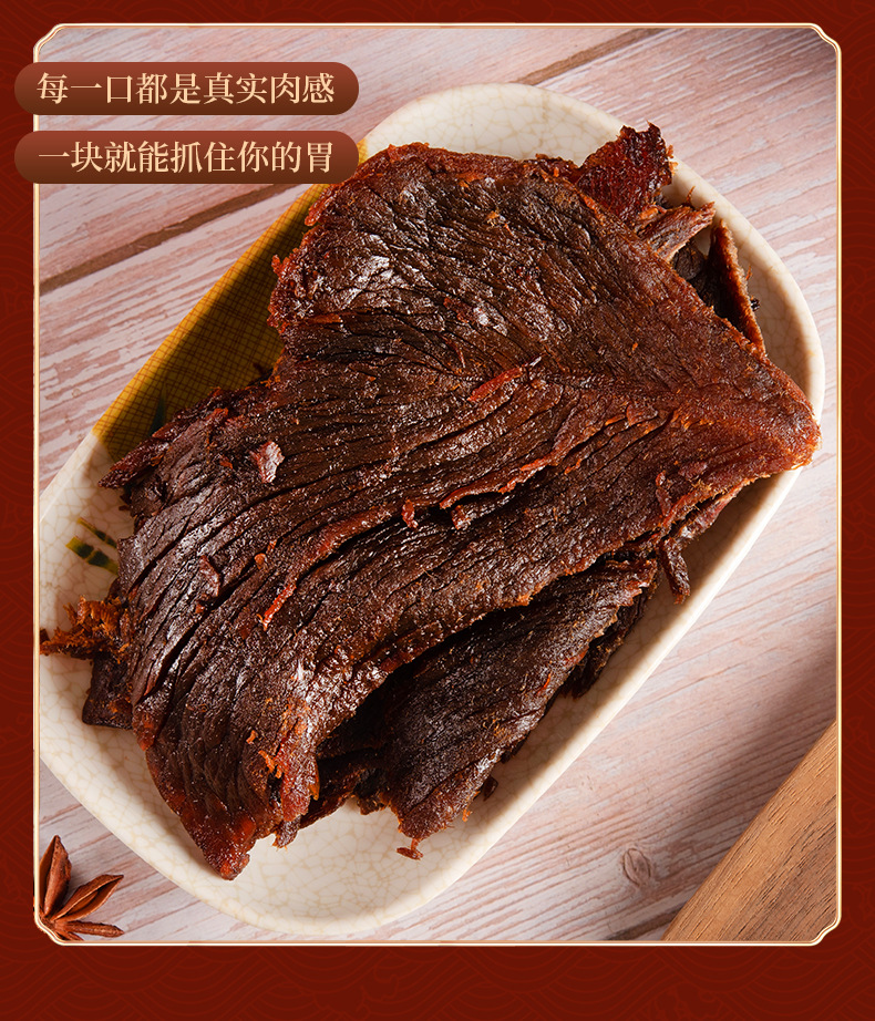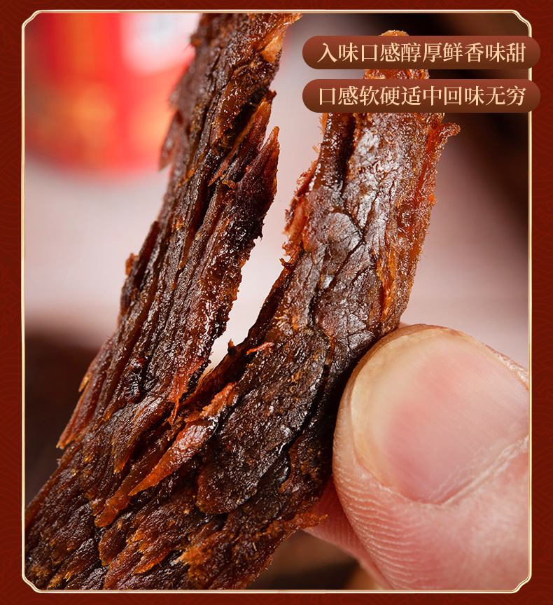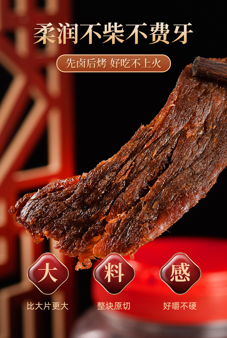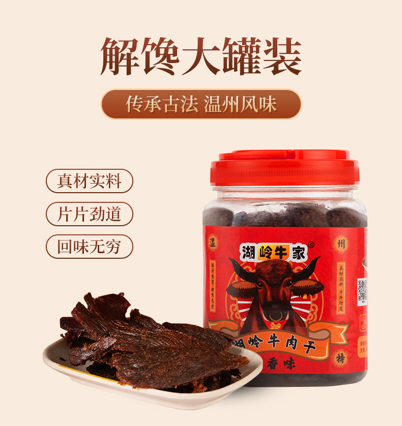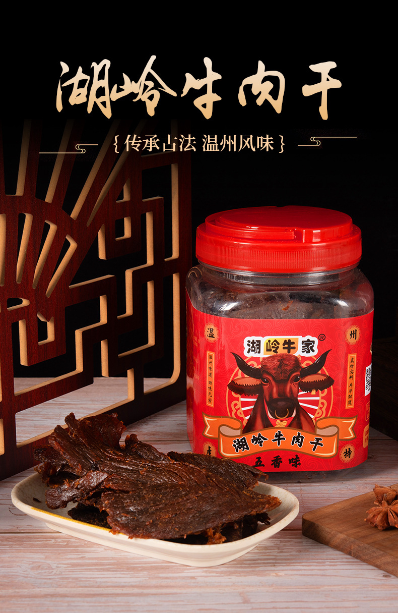 Cinco especias de carne seca de ternera satay en barriles grandes Wenzhou huling carne de res rasgada a mano bocadillos enlatados al por mayor
