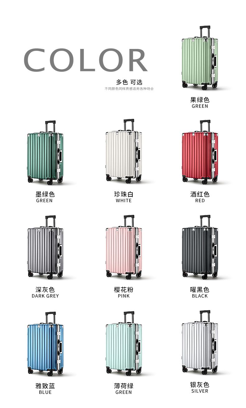Maleta de marca fuerte y duradera, maleta de trolley, marco de aluminio de rueda universal, maleta de embarque, maleta de contraseña para estudiantes masculinos y femeninos