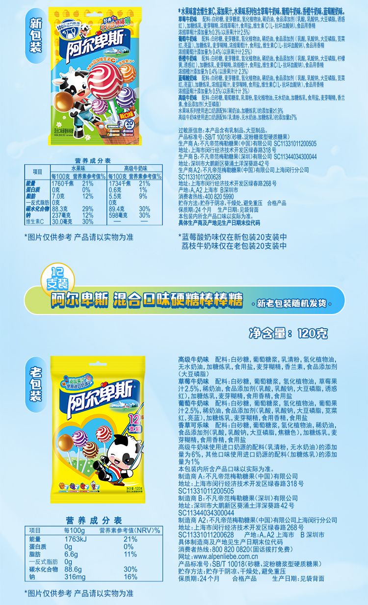 Piruletas alpinas 12 / 20 / 38 dulces dulces dulces de boda azúcar de boda bocadillos nostálgicos mezcla de sabor a leche y fruta