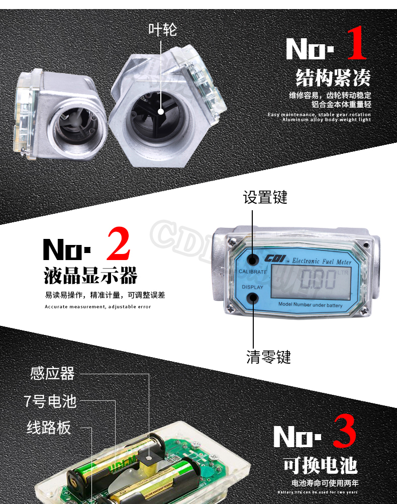 Medidor de flujo de turbina 69045 6 minutos / 1 pulgada / 1,5 pulgadas medidor de flujo diesel, gasolina, queroseno y metanol