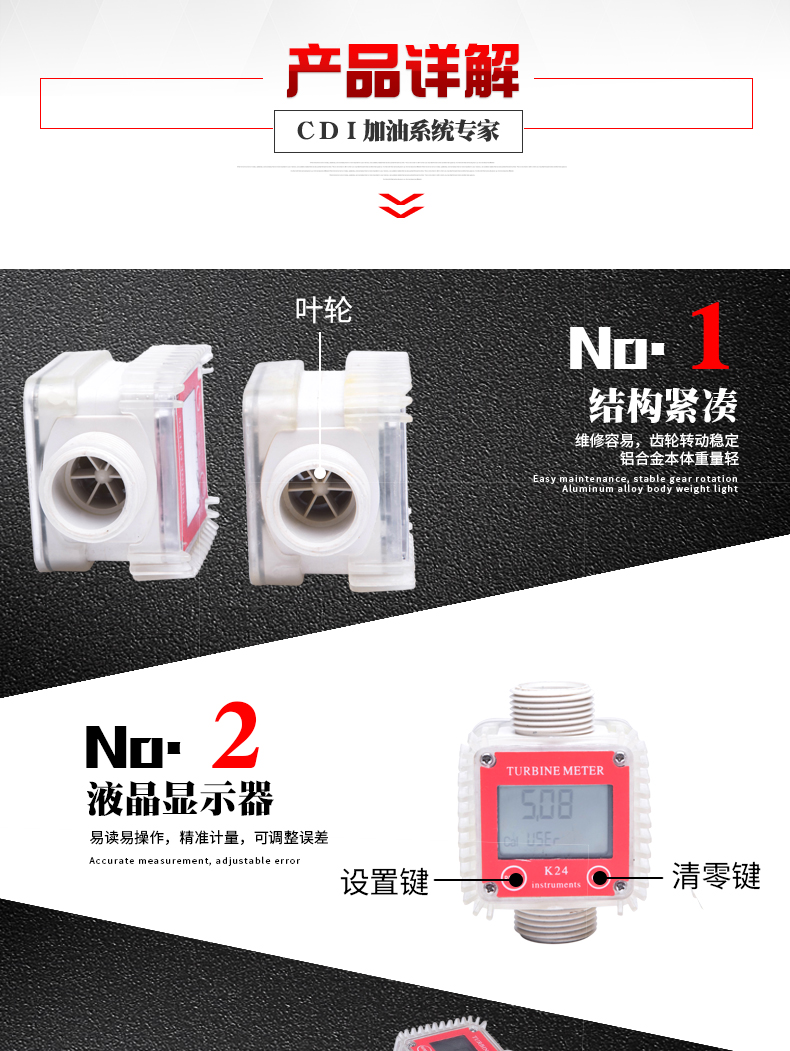 Medidor de flujo de impulsor 68979 entrada de 1 pulgada de agua / líquido químico / aceite comestible / medidor de flujo de metanol