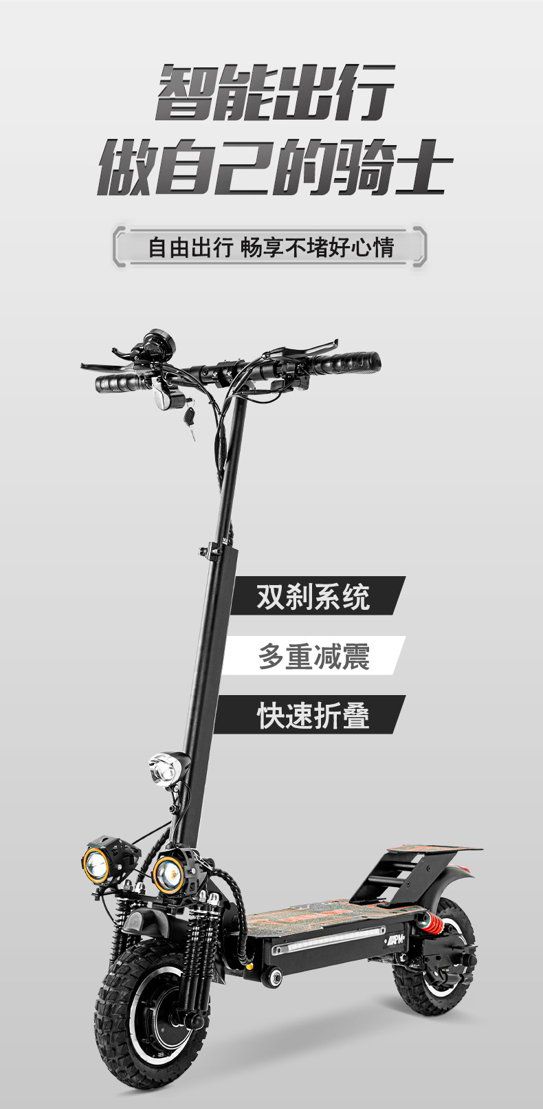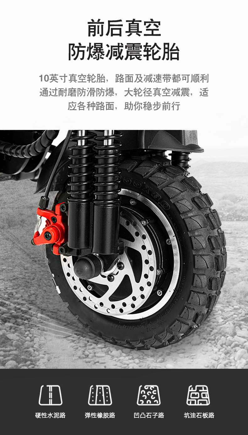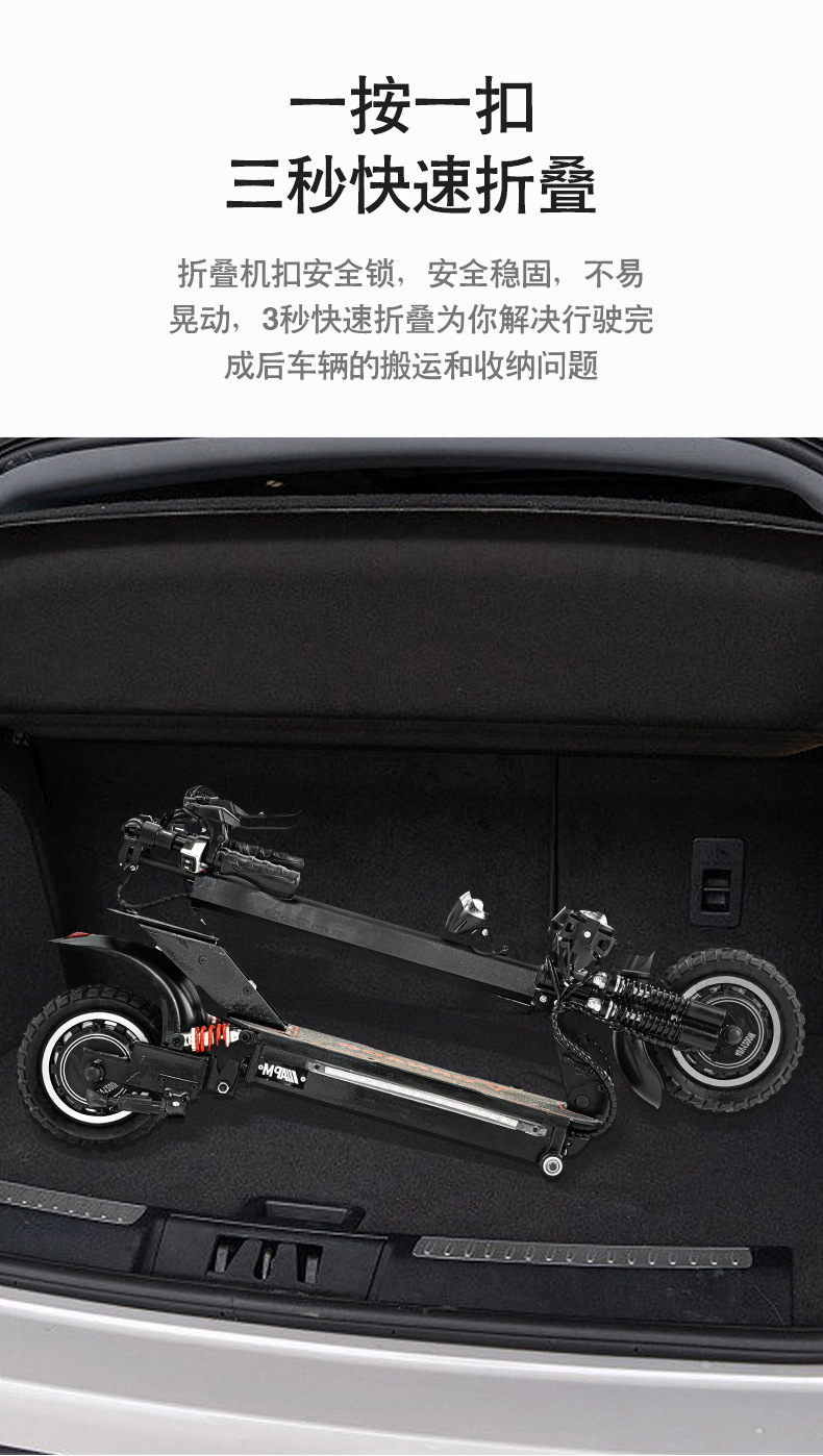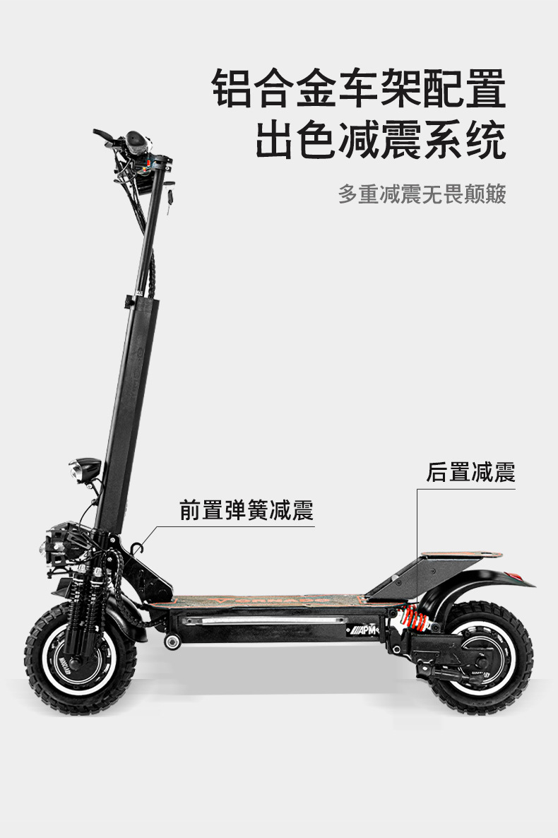 Scooter eléctrico de doble tracción de 10 pulgadas y 11 pulgadas 48v1000 W Vehículo eléctrico portátil de batería de litio doble absorción de impactos faros LED