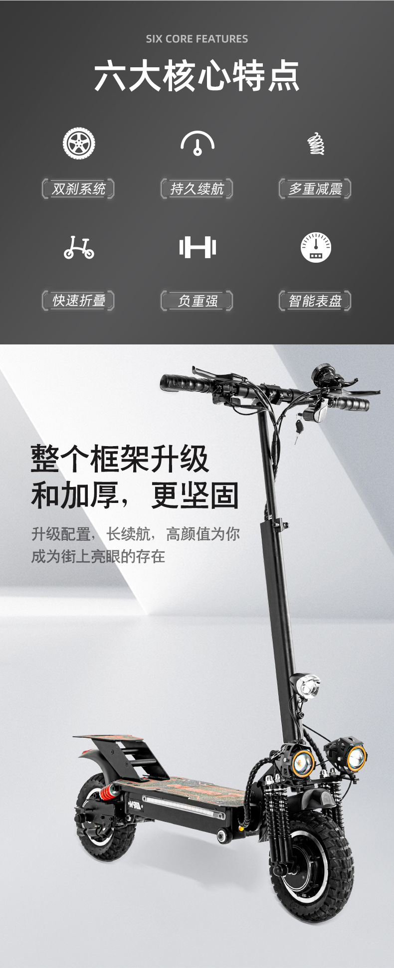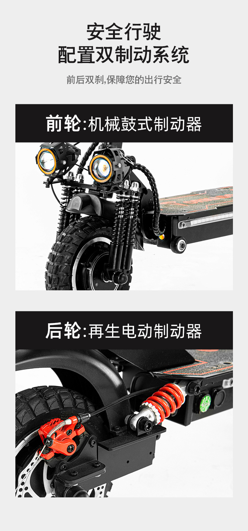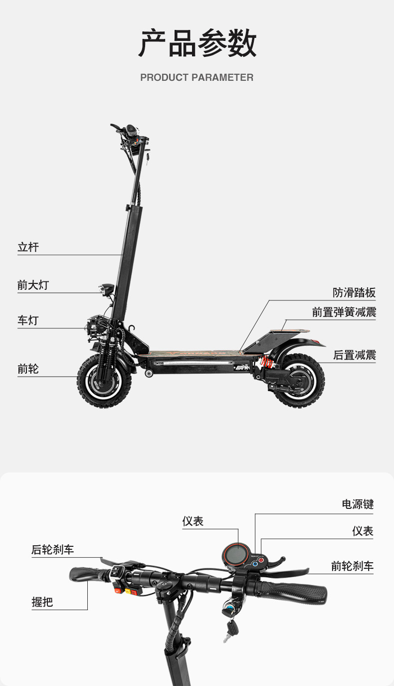 Scooter eléctrico de doble tracción de 10 pulgadas y 11 pulgadas 48v1000 W Vehículo eléctrico portátil de batería de litio doble absorción de impactos faros LED