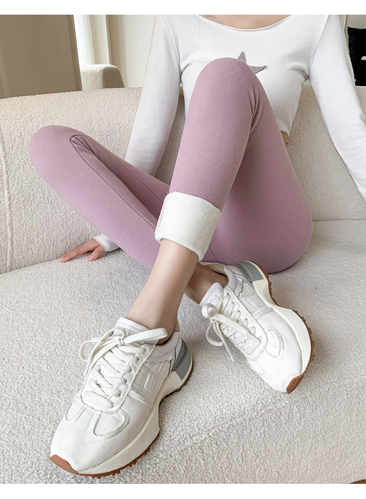 Pantalones de otoño de terciopelo, pantalones de otoño de mujer, cintura alta en otoño e invierno, ajustados sin marcas, pantalones calientes y pantalones de hilo engrosados de terciopelo, pantalones de calentamiento y pantalones de fondo.