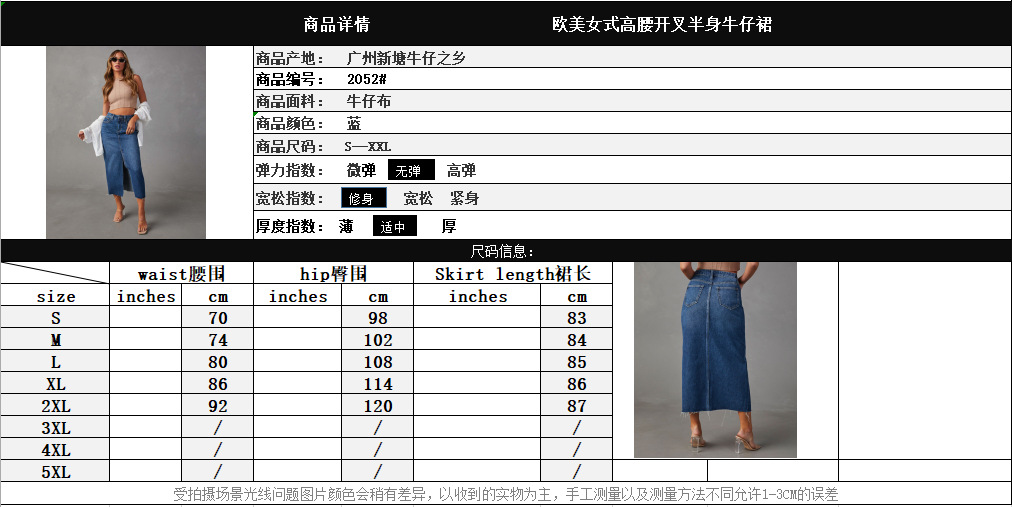 Amazon Cross - Border 2023 nuevo vestido vaquero con horquilla abierta lavado en la cintura alta, estilo europeo y americano vestido de media falda larga