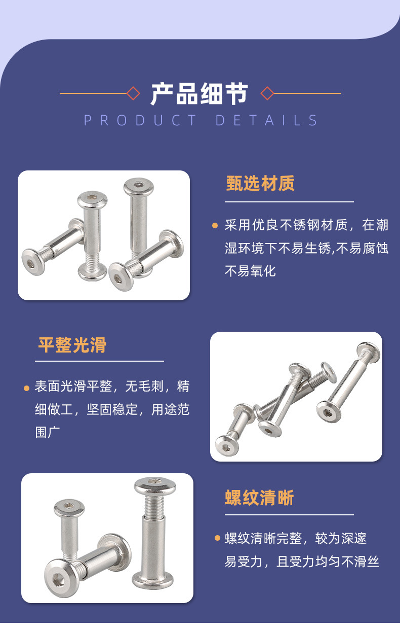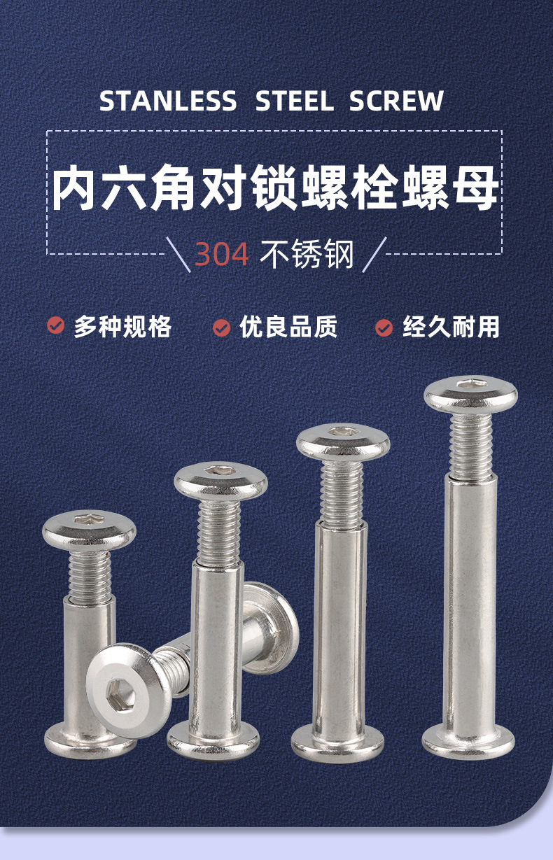 Tornillo madre 304 tornillo de cerradura hexagonal interior de acero inoxidable tornillo madre Remache muebles de fijación de tornillos tuerca de férula