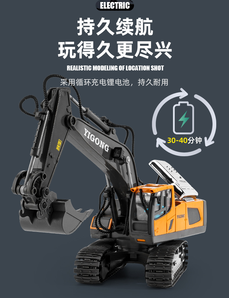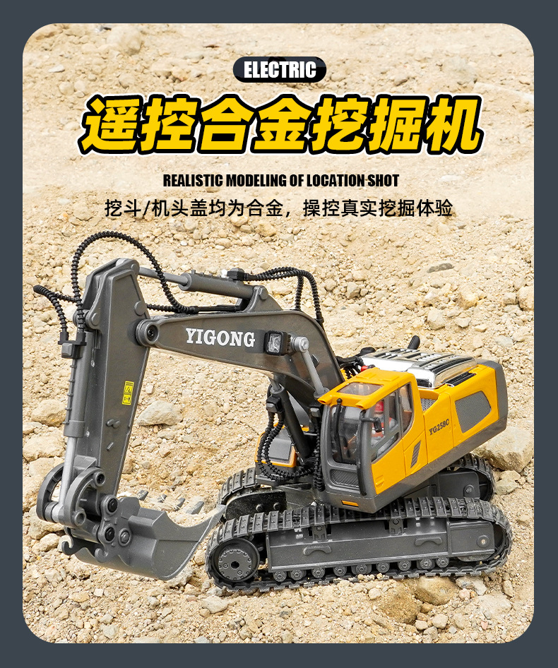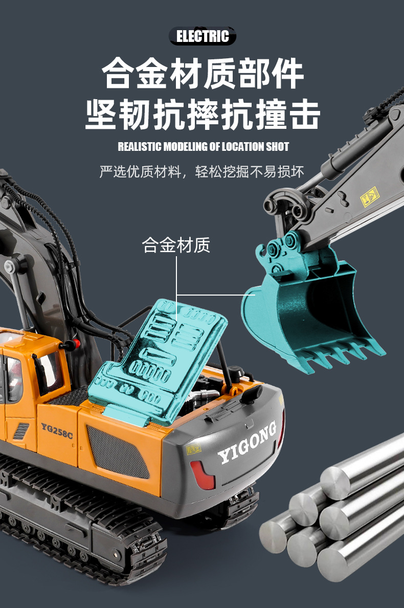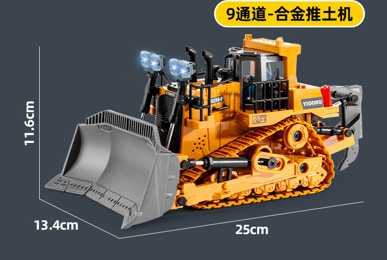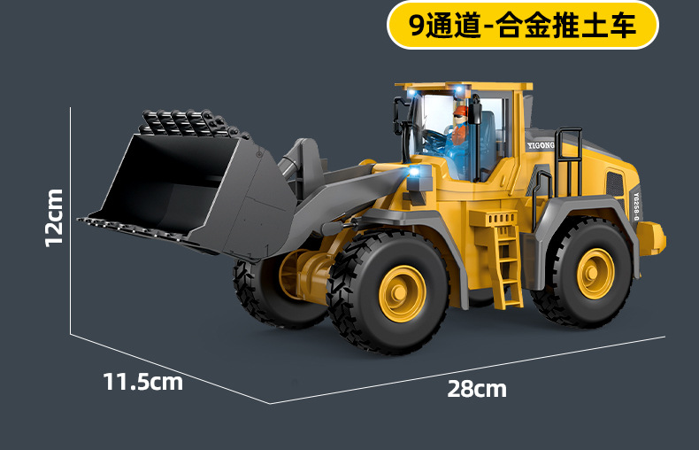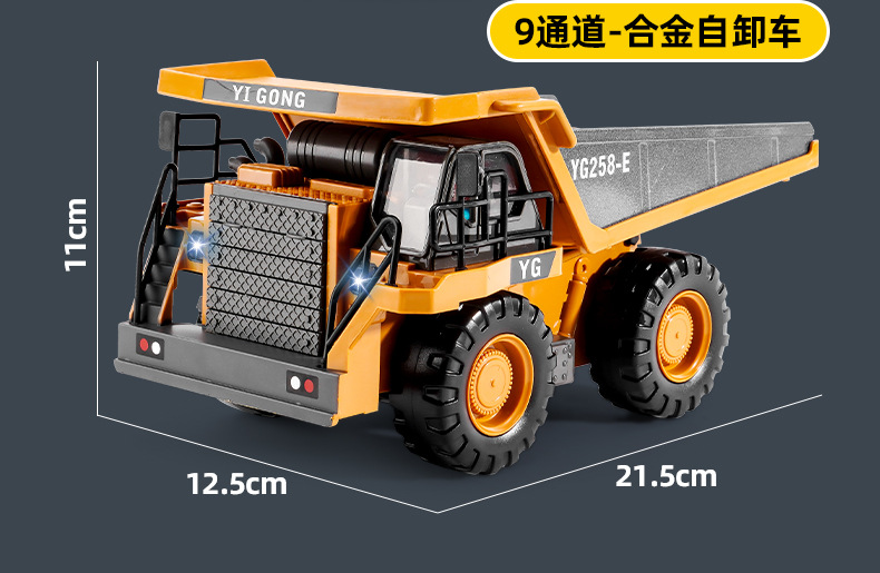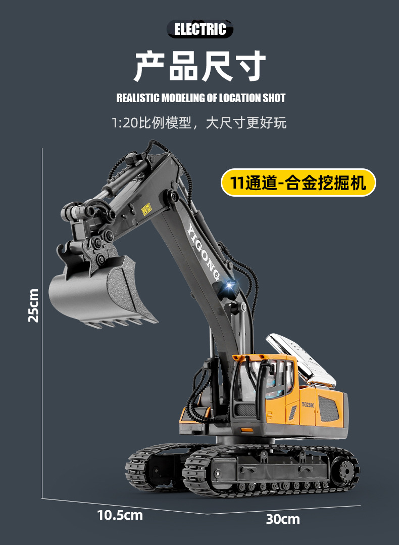 Excavadora de aleación de control remoto de 11 canales excavadora volquete de pulverización excavadora de juguetes infantiles excavadora de control remoto