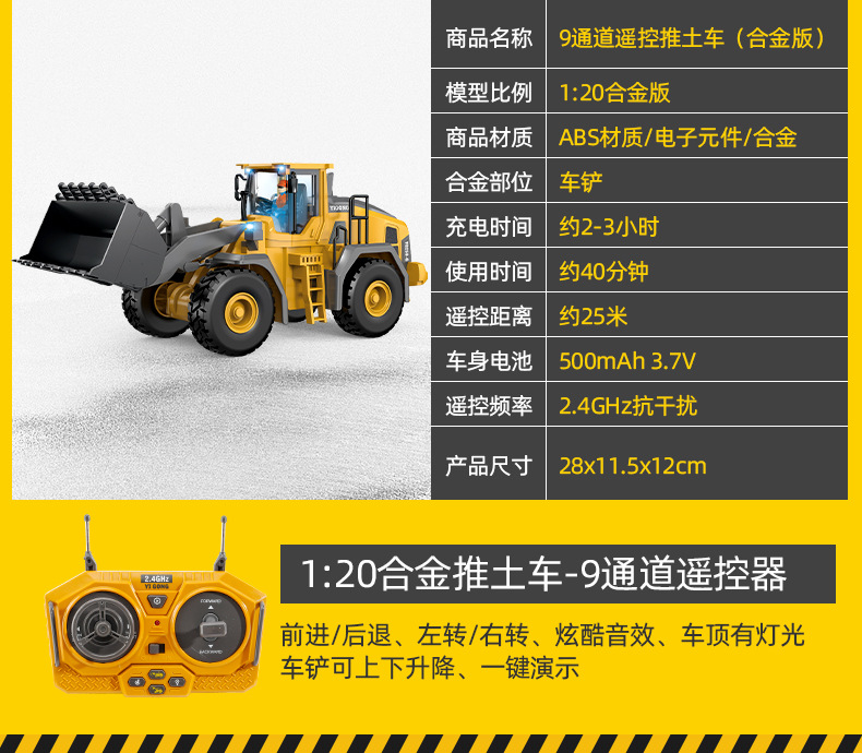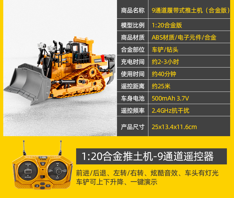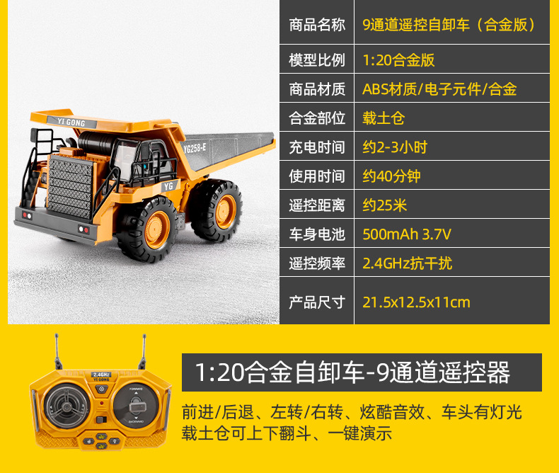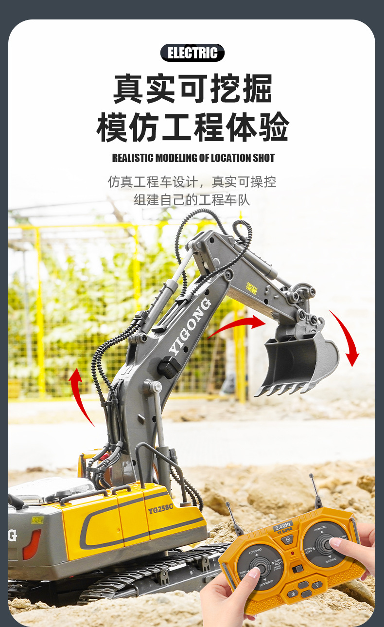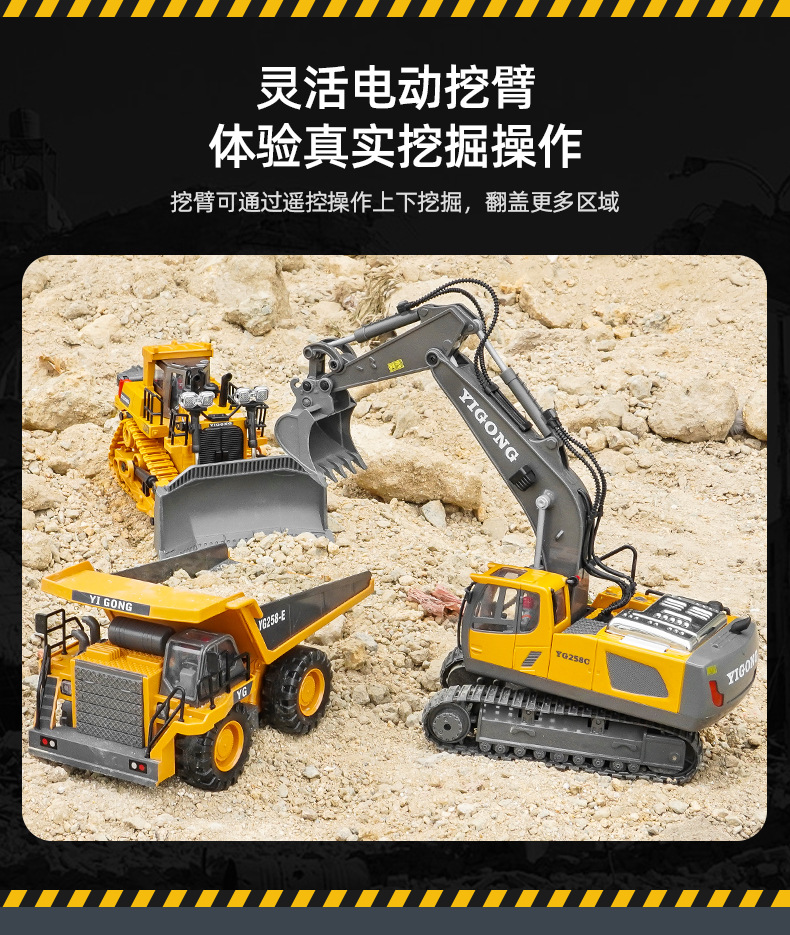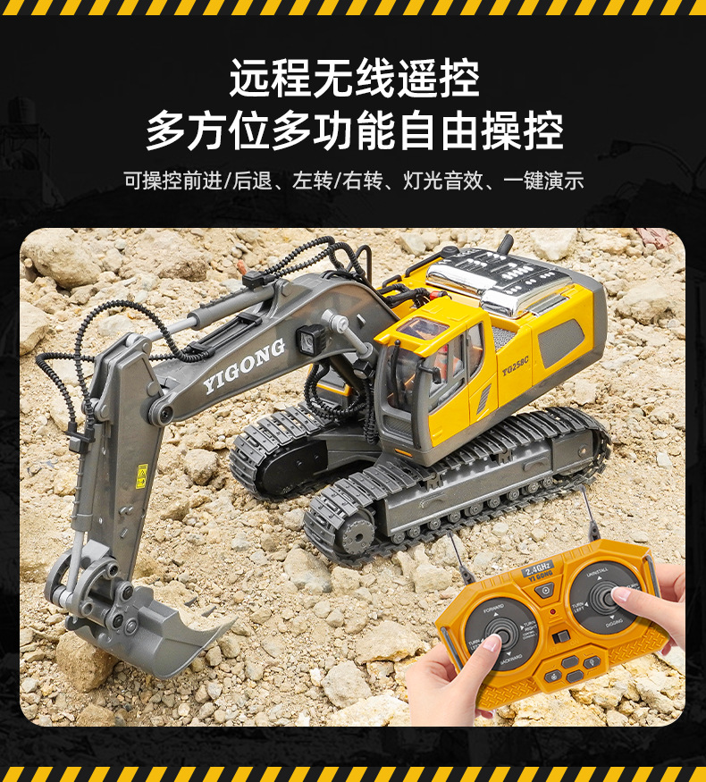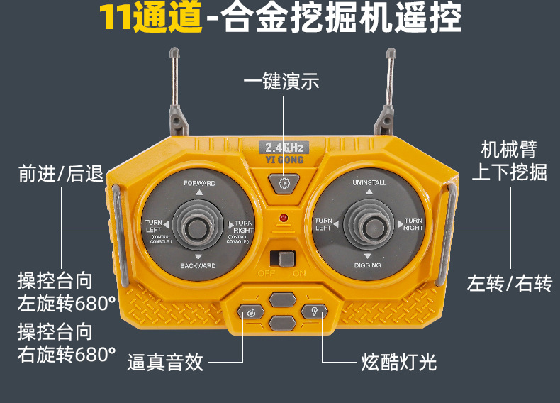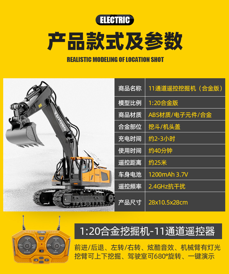 Excavadora de aleación de control remoto de 11 canales excavadora volquete de pulverización excavadora de juguetes infantiles excavadora de control remoto