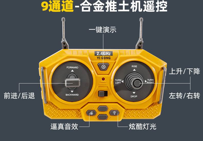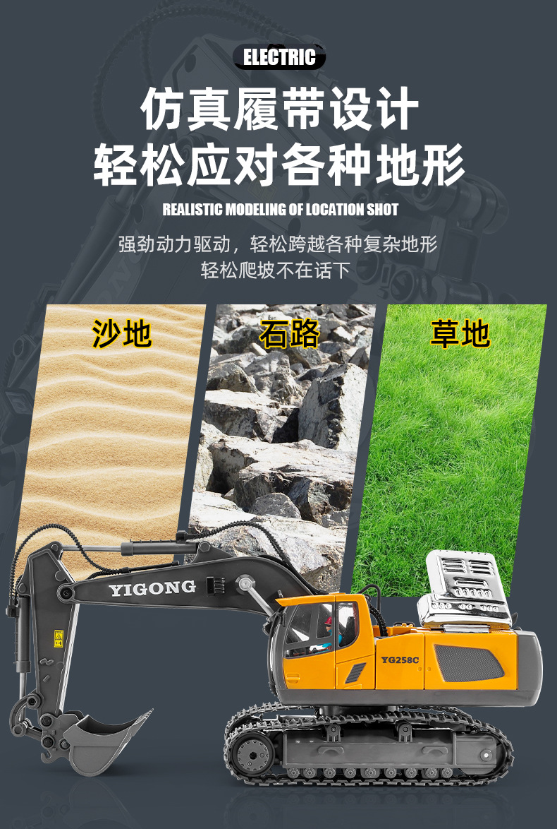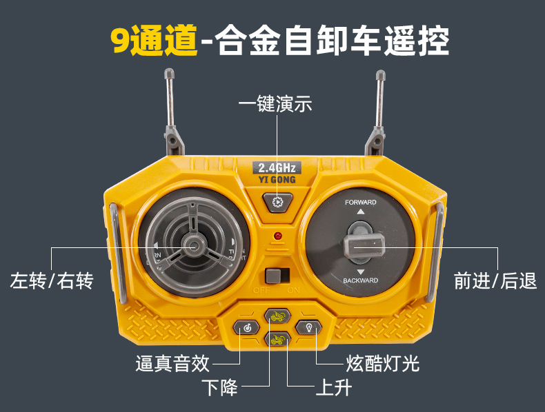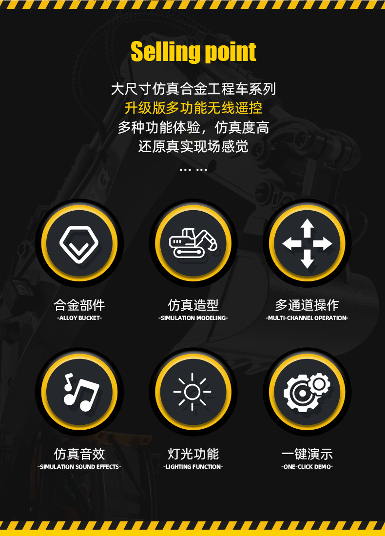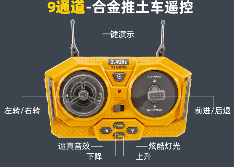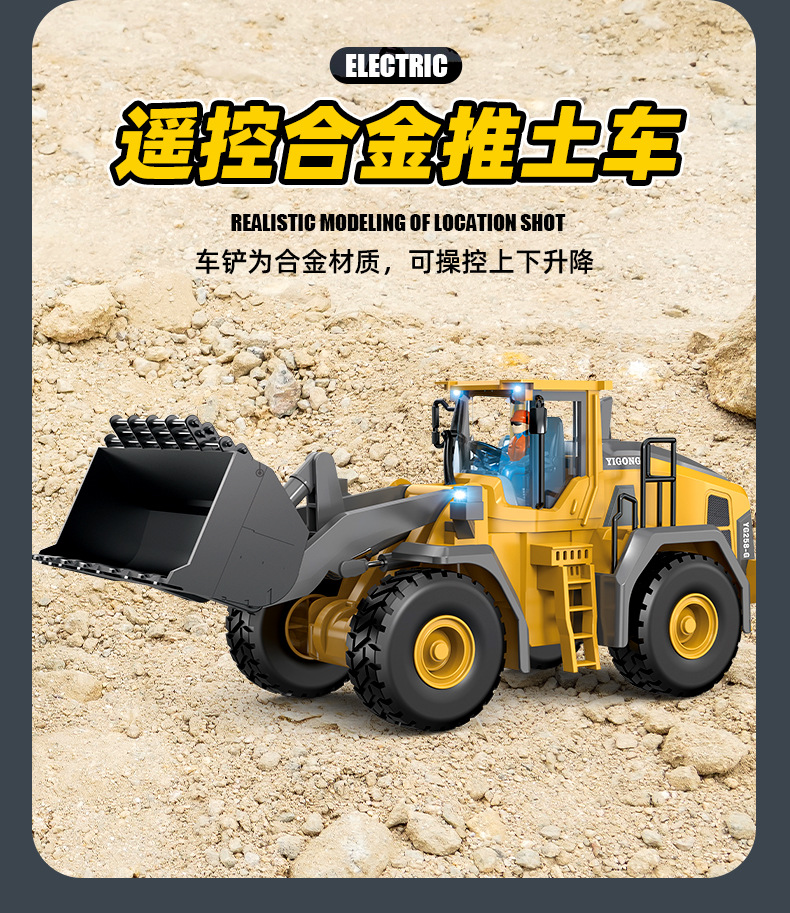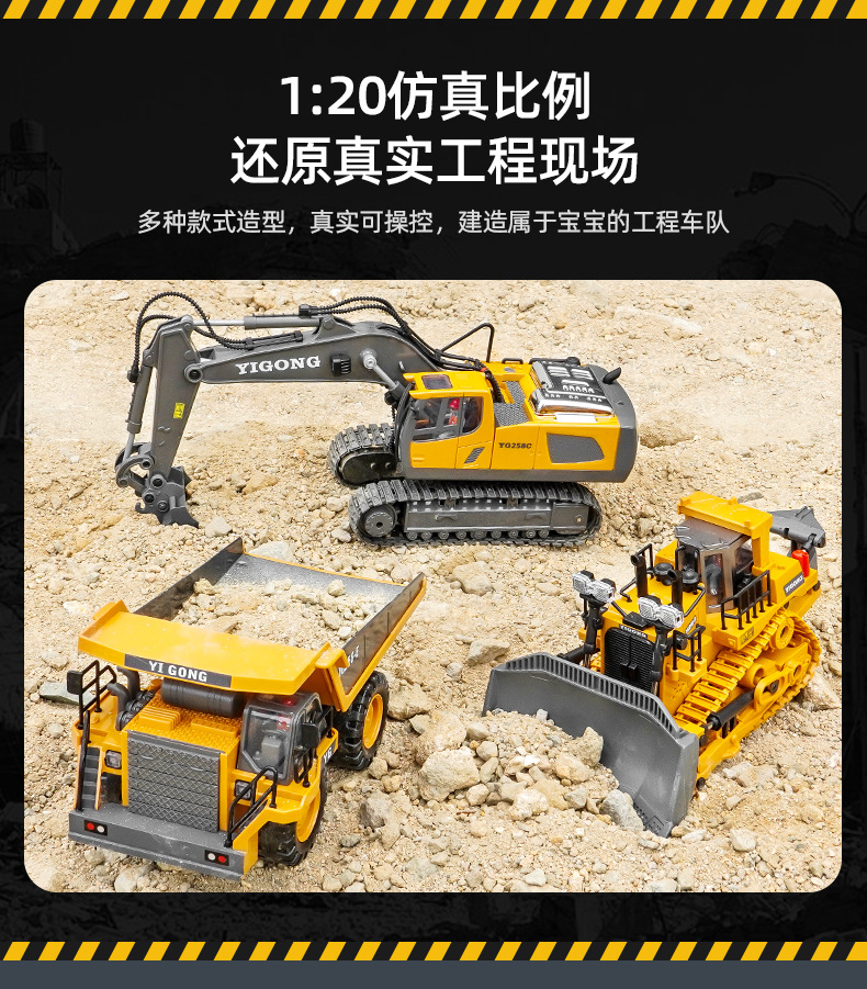 Excavadora de aleación de control remoto de 11 canales excavadora volquete de pulverización excavadora de juguetes infantiles excavadora de control remoto