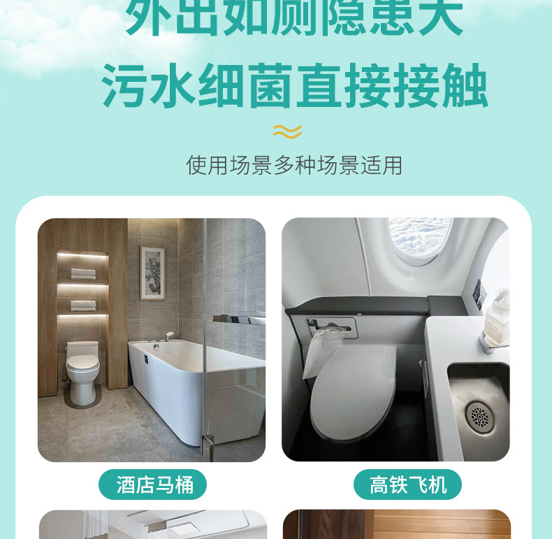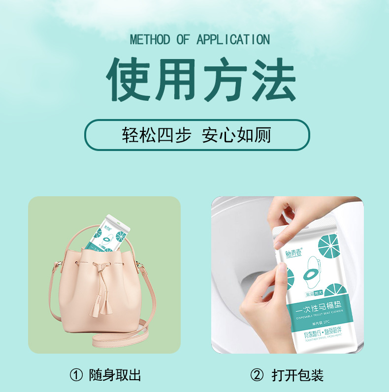 La almohadilla de inodoro desechable de pomelo Youth se empaqueta de forma independiente, y la funda de inodoro portátil de doble capa impermeable para viajes domésticos.