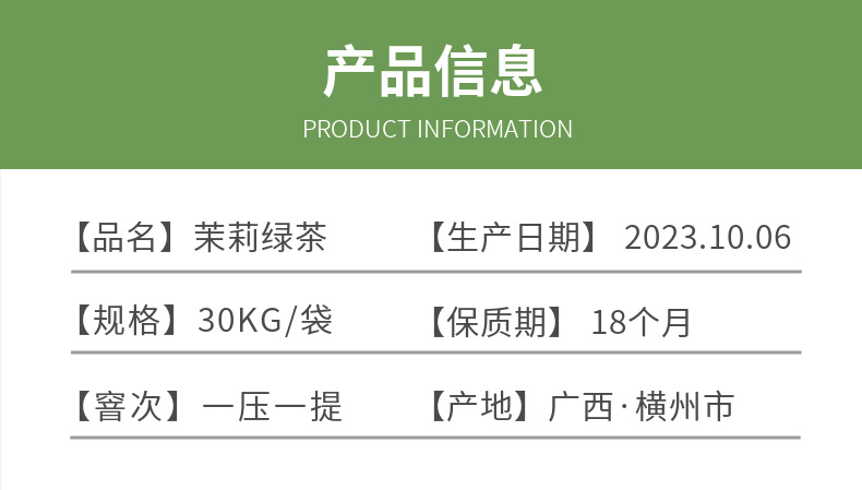 Los fabricantes de la fuente del condado de hengxian, guangxi, venden directamente té verde de jazmín a granel, té de flores de jazmín de segunda clase, té de hojas de jazmín al por mayor.