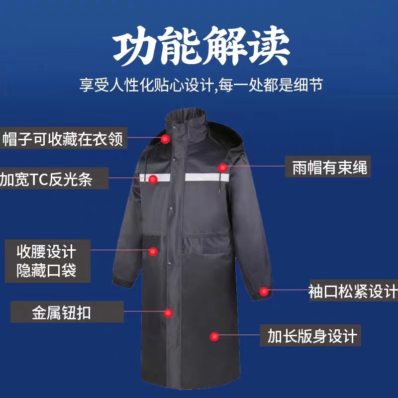 Impermeable de conexión alargada, impermeable de doble capa, impermeable de doble capa, impermeable reflectante de emergencia al aire libre para adultos, gabardina larga