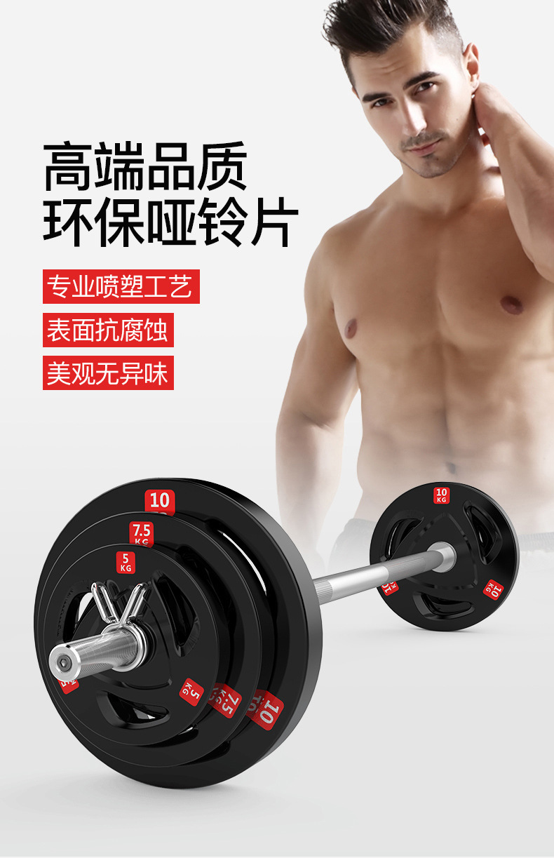 Tratamiento de liquidación de 5 - 10 kg de láminas de hierro fundido recubiertas de láminas de mancuernas de levantamiento de pesas domésticas de 5 cm con agujeros grandes agarrados a mano por barras olímpicas